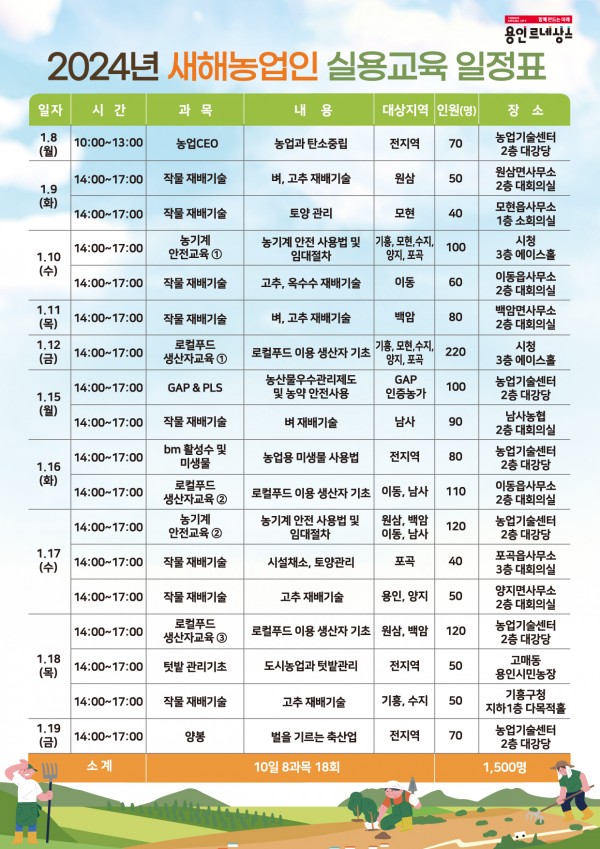 용인특례시, 8일부터 새해농업인실용교육 시작