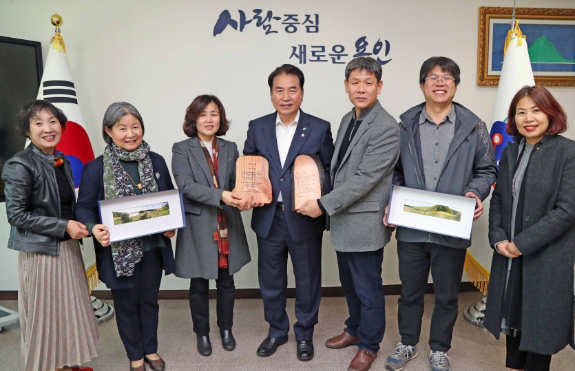 이날 동천지구 이스트팰리스아파트 대표와 고기동 지킴이 어머니회 대표 등 6명은 백군기 시장실을 찾아 지역 주민의 마음을 담은 감사패를 전했다.