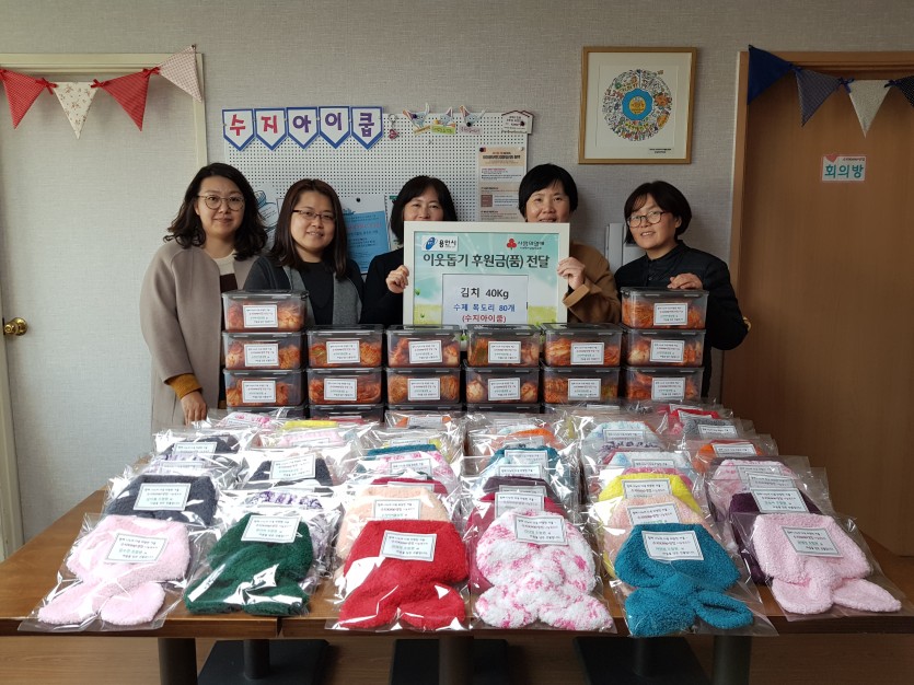 수지구, 아이쿱 생활협동조합서 이웃돕기 성품 기탁 김경순 기자 2019-11-28 20:50 가 본문내용 확대/축소 본문 수지구, 아이쿱 생활협동조합서 이웃돕기 성품 기탁 용인시 수지구는 28일 수지아이쿱 소비자 생활협동조합에서 어려운 이웃을 위해 써 달라며 손뜨개목도리 80개와 김치 40kg를 기탁했다고 밝혔다. 이윤미 수지아이쿱 생활협동조합 대표는 “한파를 대비해 저소득 가정 어린이나 어르신들이 따뜻하게 겨울을 나는데 마음을 보태고 싶어 회원들이 직접 목도리를 떠 김치와 함께 기부하게 됐다”고 말했다. 이들은 앞선 7월에도 140만원 상당의 식품꾸러미를 기부한 바 있고 매년 어려운 이웃을 위해 다양한 물품을 기탁해왔다. 구 관계자는 “어려운 이웃을 위해 잊지 않고 성품을 기탁해 줘 고맙다”며 “전달받은 물품은 관내 어려운 이웃들에게 소중하게 전할 것”이라고 말했다. 좋아요 0 싫어요 0 김경순 기자 기자의 다른기사 보기 목록 댓글목록 이전글 죽전2동, 주민자치위서 장애인 가구 등에 김치 50박스 전달 19.11.28 다음글 용인시의회 도시건설위원회, 행정사무감사 현지확인 19.11.28