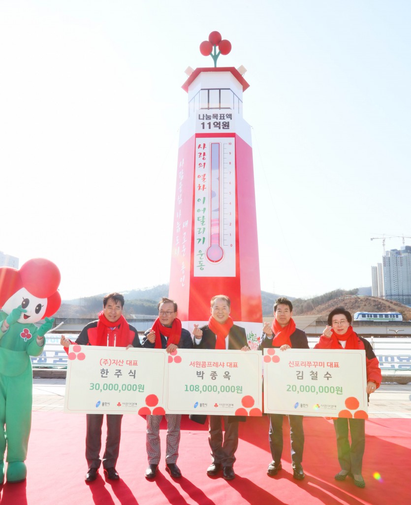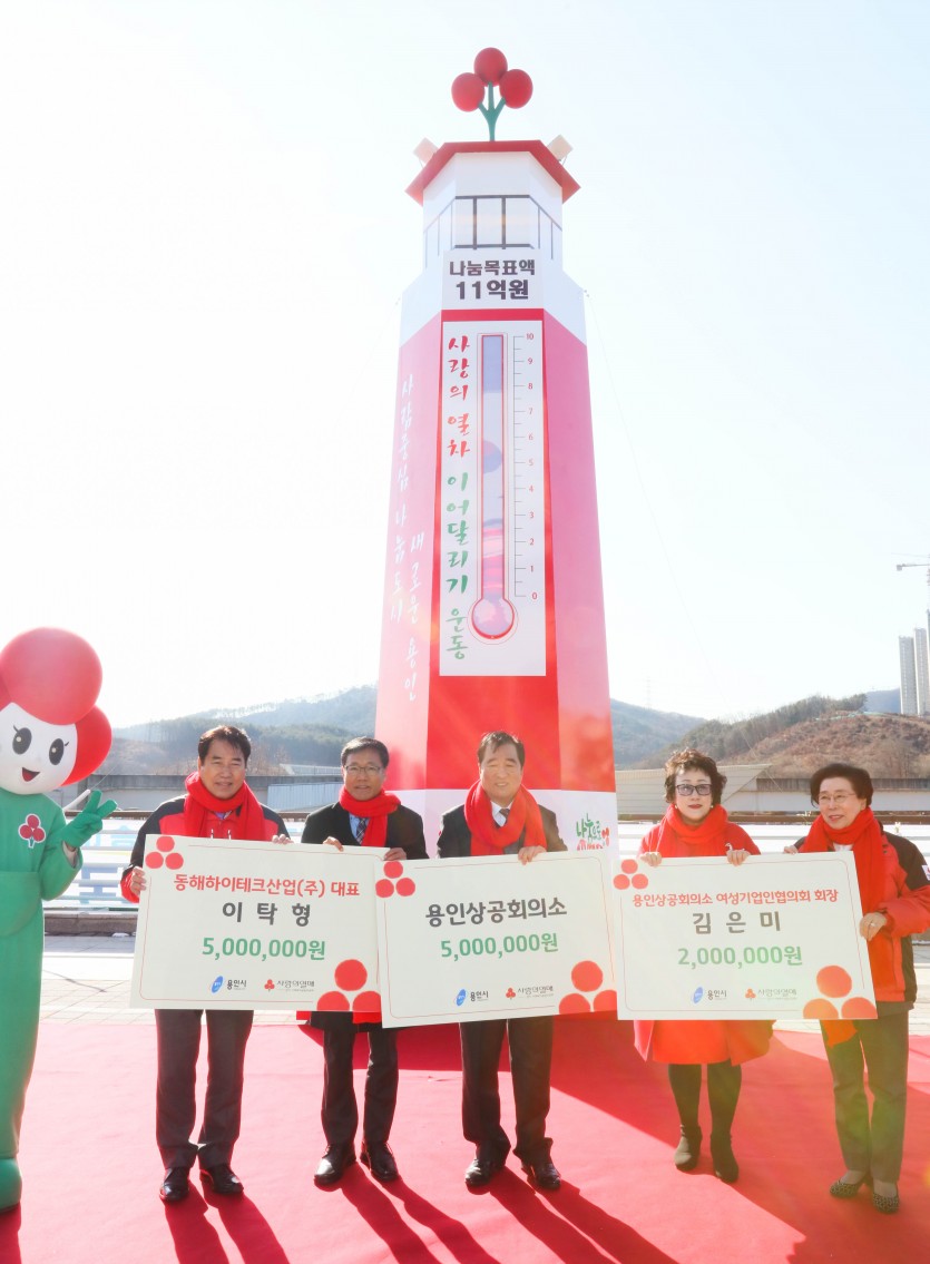 용인시, 이웃돕기 확산 위해 사랑의 온도탑 제막 김경순 기자 2019-12-06 00:24 가 본문내용 확대/축소 본문 용인시, 이웃돕기 확산 위해 사랑의 온도탑 제막용인시, 이웃돕기 확산 위해 사랑의 온도탑 제막용인시, 이웃돕기 확산 위해 사랑의 온도탑 제막 용인시는 5일 시청 광장에서 연말연시 이웃돕기 운동인 ‘사랑의 열차’의 모금 현황을 알리고 관내 나눔 문화를 확산하기 위한 사랑의 온도탑 제막식을 열었다. 이날 행사엔 백군기 시장을 비롯해 이건한 용인시의회 의장, 이순선 경기사회복지공동모금회 회장, 개인고액기부자 모임인 아너소사이어티 용인 회원, 노인‧장애인 복지기관장 등 40명이 참석했다. 백 시장은 “따뜻한 이웃 사랑의 온기를 확인할 수 있는 사랑의 온도탑이 설치돼 기쁘다”며 “작은 정성이 모여 큰 사랑이 되도록 많은 시민들이 적극 동참해주기 바란다”고 말했다. 이날 용인 아너소사이어티 회원인 박종옥 서원재단 이사장이 성금 1억800만원, 한주식 ㈜지산 대표가 3000만원, 김철수 신포리쭈꾸미 대표가 2000만원을 각각 기부했다. 용인상공회의소서 500만원, 용인상공회의소 여성기업인협의회가 200만원, 동해하이테크산업(주)도 500만원의 성금을 기탁했다. 한편 시 관계자들은 용인시 사랑의 온도탑의 온도가 100% 달성되길 염원하는 카드섹션을 선보였다. 좋아요 0 싫어요 0 김경순 기자 기자의 다른기사 보기 목록 댓글목록 이전글 자활분야 우수지자체 평가서 보건복지부 장관 표창 19.12.06 다음글 남사면, 지역사회보장협의체서 홀로어르신 부식 전달 19.12.06