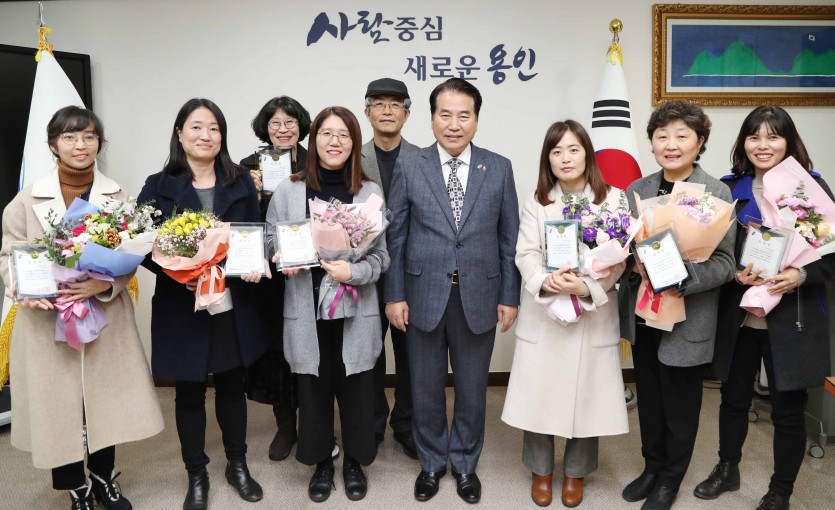 백군기 용인시장은 17일 시장실에서 작은도서관 활성화를 위해 노력한 자원봉사자 7명에게 표창장을 수여했다.