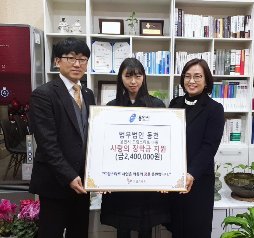 용인시, 법무법인 동천서 드림스타트 아동에 장학금 전달 소비환경뉴스 2019-12-20 04:37 가 본문내용 확대/축소 본문 용인시, 법무법인 동천서 드림스타트 아동에 장학금 전달 용인시는 지난 18일 법무법인 동천이 드림스타트 아동 2명에게 120만원씩 장학금을 전달했다고 밝혔다. 동천은 지난 11월 드림스타트 아동의 예체능 발표회를 통해 태권도 실력이 출중한 자매를 보고 꿈을 응원하고 싶어 장학금을 마련했다. 김용숙 동천 소장은 “어려운 가정의 아이들이 꿈을 포기하지 않도록 작은 희망을 나누려는 것”이라며 “앞으로도 꾸준히 아이들의 꿈을 응원할 것”이라고 말했다. 시는 경기사회복지공동모금회를 통해 1년간 매월 10만원씩 두 아동에게 이 장학금을 전할 방침이다. 시 관계자는 “법무법인 동천이 어려운 아동의 꿈을 응원해줘 감사하며 아이들이 꿈을 키우도록 다양한 체험과 교육프로그램을 지원할 것”이라고 말했다. 좋아요 0 싫어요 0 소비환경뉴스 기자의 다른기사 보기 목록 댓글목록 이전글 “소통과 공감으로 행복한 성장스토리 만들기” 19.12.20 다음글 “이번 겨울 용인서 신나는 체험여행 즐겨요” 19.12.20