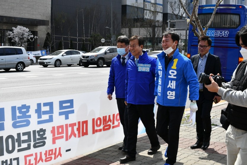 오세영 후보, 원혜영 의원-이화영 유세본부장 합동 유세 김경순 기자 2020-04-14 07:16 가 본문내용 확대/축소 본문 오세영 후보, 원혜영 의원-이화영 유세본부장 합동 유세오세영 후보, 원혜영 의원-이화영 유세본부장 합동 유세 오세영 더불어민주당 용인시갑 국회의원 후보를 지원하기 위하여 12일 ‘라떼는! 유세단장’ 원혜영 의원과 ‘국민지킴유세본부장’ 이화영 전 의원이 명지대사거리 앞에서 함께 합동 유세를 진행했다. 오세영 후보는 “힘 있는 집권여당 후보로써 경강선과 부발선 예비타당성 조사 면제로 처인 철도 시대를 열고, 용인 반도체 소재·부품·장비 특화단지 지정을 추진하여 예산 2조 1천억 원을 반드시 유치하겠다.”는 야심찬 포부를 밝혔다. □ 오세영 후보는 “원혜영 의원님과 이화영 전 의원님께서 귀한 발걸음 해주셨다. 이는 집권여당인 더불어민주당의 용인발전 으뜸처인을 반드시 실현하겠다는 강력한 의지의 표현이라고 생각한다. 힘을 실어주기 위하여 방문해주신 중진 의원님들과 함께, 문재인 정부의 성공과 처인 지역 발전을 위하여 반드시 승리하겠다.”고 밝혔다. □ 이어 “역삼동에는 문화거리 조성사업, 시청앞·관곡마을·역삼도시개발 사업 지원, 역북동 구도심 도시재생사업을 추진하겠다는 약속을 드렸다. 또한 초중고 설립 추진, 역북 중앙도서관 시설 확대, 공공주차장 건립, 방음터널 설치, 삼가초 일조권 대책 마련 등 생활 밀착 정책들도 세밀하게 추진하고, 지역주택아파트 조합원 법적 보호제도 도입 등 입법 과제들도 빠짐없이 챙기겠다는 약속을 드린다. 힘을 실어주시기 위해 먼 걸음 해주신 여러 중진 의원님들께서 처인 발전을 위해 , 함께 힘 있는 여당 더불어민주당이 개혁 과제들을 빠짐없이 챙기겠다.”고 밝혔다. □ 원혜영 의원은 “전국의 신규 확진자가 100명 이하로 안정화되고 있다. 이 모든 것이 위대한 대한민국 국민의 힘이다. 4.15 총선은 코로나19를 극복하고 미래로 전진해나갈 것이냐, 과거로 회귀하고 주저앉을 것이냐를 결정하는 선거다.”라고 밝혔고, 이화영 전 의원은 “대통령, 도지사, 시장과 함께 처인구를 땀으로 적실 우리 오세영 후보와 함께 새로운 대한민국, 새로운 처인을 만들어나가자”라고 밝혔다. □ 원혜영 의원(경기 부천 오정, 5선)은 민주당 원내대표, 민주통합당 초대 당대표, 민선 2·3기 부천시장을 역임한 바 있다. 이화영 전 의원은 제17대 국회의원(서울 중랑갑, 초선)과 경기도 평화부지사를 역임한 바 있다. 이번 21대 총선에서 오세영 후보를 응원하기 위하여 이석현 의원(안양 동안갑, 6선), 김진표 의원(수원시무, 4선), 이인영 원내대표(서울 구로갑, 3선), 박광온 최고위원(수원시정, 재선), 이학영 의원(군포시을, 재선), 전해철 의원(안산 상록갑, 재선), 임종성 의원(광주시을, 초선), 표창원 의원(용인시정, 초선)이 방문한 바 있다. 2020. 4. 13. 더불어민주당 용인시갑 국회의원 후보 오세영 좋아요 0 싫어요 0 김경순 기자 기자의 다른기사 보기 목록 댓글목록 이전글 미래통합당 박형준 공동선거대책위원장, 용인시을 이원섭 국회의원 후보 지원유세 나서 20.04.14 다음글 오세영 후보, 세월호 참사 5대 정책과제 약속운동 동참 20.04.14