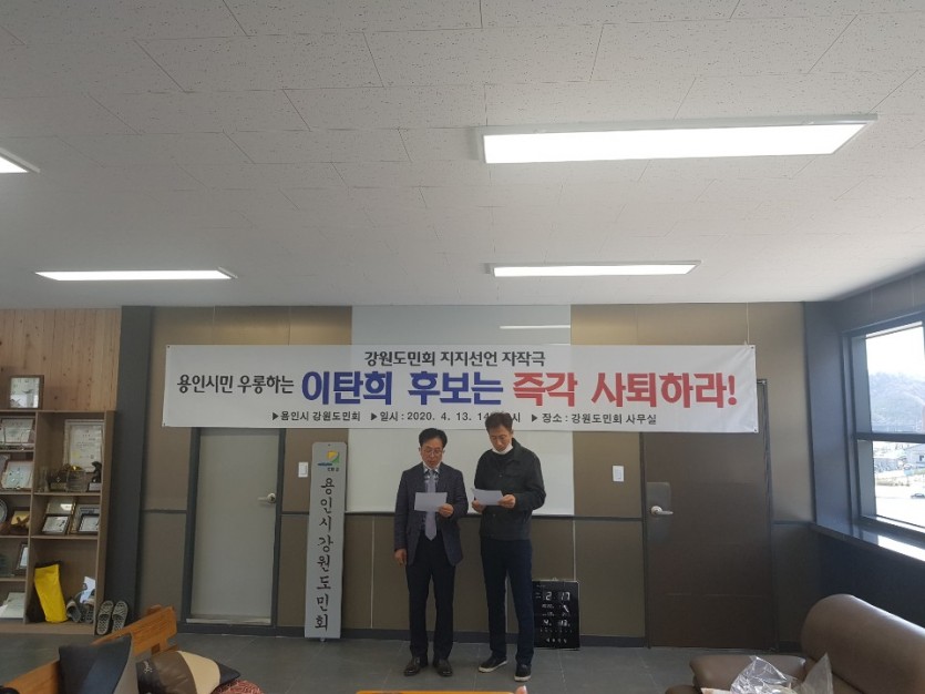 이탄희 후보 즉각사퇴와 대국민사과 요구한 용인시 강원도민회 김경순 기자 2020-04-14 07:27 가 본문내용 확대/축소 본문 이탄희 후보 즉각사퇴와 대국민사과 요구한 용인시 강원도민회 용인시 강원도민회(승봉수 회장)는 4월13일 오후2시, 용인시강원도민회 사무실에서 긴급기자회견을 갖고 이탄희 후보 지지선언은 허위보도라며 이탄희 후보의 사퇴를 요구했다. 더불어민주당 용인정 이탄희 후보는 4월11일 강원도민회가 선거캠프를 찾아 지지선언을 했다는 보도자료를 배포하였다. 이와 관련하여 용인시 강원도민회와 기흥구 강원도민회(신승만 회장)는 전혀 아는 바가 없다고 밝혔다. 기자회견은 신승만 용인시 강원도민회 부회장겸 기흥구 강원도민회장과 김경래 강원도민회 체육국장의 성명서 발표로 진행되었다. 신승만 부회장은 성명서를 통해 “코로나 사태로 시시각각 민생위기가 다가오는 상황에서 그 어느 때보다도 차분한 선거로 국민을 안심시켜야 할 의무가 이번 선거에 출마한 모든 후보들에게 있다”고 하며“용인 강원도민회 승봉수 회장 및 임원단에게 확인한 결과 강원도민회는 이탄희 후보 지지를 결의하거나 공표한 사실이 전혀 없음”을 밝혔다. 또한 “이탄희 후보는 있지도 않은 지지선언 자작극으로 선거 막판 용인시민의 눈과 귀를 흐리는 전형적인 구태정치를 답습”하고 있다고 비난했다. “강원도민회 지지선언 자작극으로 용인시민을 우롱하고 강원도민회의 명예를 훼손한 이탄희 후보는 국회의원이 될 자격이 없으며”,“본격적인 정치를 시작하기도 전에 거짓말로 용인시민을 우롱하는 후보가 국회의원이 된다면 앞으로 얼마나 끔찍한 일이 벌어질지 상상만 해도 아찔한 일”이라고 말했다. 그리고 “더불어민주당 이탄희 후보는 강원도민회 지지선언 자작극으로 용인시민을 우롱한 것에 대해 사과를 하고 후보직에서 즉각 사퇴할 것”을 촉구했다. ‘정의의 아이콘’이라고 자칭하는 전 판사인 이탄희 후보의 이러한 행동은 조용하고 깨끗한 선거를 지향하는 용인정 선거구지역의 정서와는 맞지 않은 일이며, 용인시민의 올바른 판단과 선택을 기대한다. 끝. 좋아요 0 싫어요 0 김경순 기자 기자의 다른기사 보기 목록 댓글목록 이전글 경기도교육청, 「경기 솔솔~독서바람」네 번째 우리집 독서바람 20.04.14 다음글 충청향우회중앙회 주요 인사, 용인(정) 김범수 국회의원후보 지지선언 20.04.14