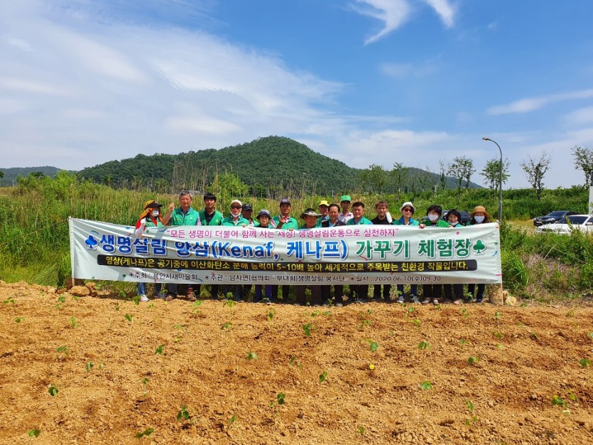 생명살림운동의 선도-남사면새마을지도자(협의회.부녀회) 생명살림봉사단-케나프(양삼) 체험장 조성 김경순 기자 2020-06-10 22:21 가 본문내용 확대/축소 본문 생명살림운동의 선도-남사면새마을지도자(협의회.부녀회)생명살림운동의 선도-남사면새마을지도자(협의회.부녀회) 용인시새마을회는 10일 남사면 방아리 진위천 수변에서 새마을운동 가치 구현을 위한 생명살림 봉사단 발대식을 갖고 남사면새마을지도자(협의회장 김성덕,부녀회장 노경숙)의 조직력과 용인시새마을회(회장 김종억)의 지역공동체 실현 의지로 새마을지도자 60명이 참여한 가운데 케나프(양삼)식재를 했다. 이날 행사에 참석한 남사면장(김종수)은 코로나 경증환자 생활치료센터 방역부터 환경개선에 도움이 되는 케나프(양삼) 식재까지 가장 낮은 곳에서 가장 눈에 띄지 않는 곳 까지 남사면새마을지도자들의 손길은 빛이 된다고 말했다. 아울러 남사수변 공원의 환경개선을 위하여 애쓰는 많은 새마을지도자분들의 노고와 케나프(양삼) 식재의 도움이 되는 양질의 흙(25t 4대분량)을 제공해주신 남사면 봉명리에 위치한 서연개발(대표 서동명)에 감사드린다고 말했다. 케나프(양삼)는 아프리카와 인도가 원산지로서 3~5m까지 크는 일년생 식물로 환경부의 친환경 작물에 대한 분석 보고서에 따르면 이산화탄소 흡수량이 상수리 나무에 비해 10배 많고 수질 정화 작용이 뛰어나 미세먼지 흡수에 탁월한 식물로 알려져 있으며, 친환경 가공재료로 사용하고 있는 것으로 보고 된 바 있다. 용인시새마을회(회장 김종억)는 코로나 19 극복으로 어려운 시기에 생명살림운동에 뜻을 같이 하고자 참석한 남사면장(김종수)과 용인시 리.통장연합회장(이한성)을 비롯한 새마을지도자분들게 감사의 뜻을 전했다. 용인시새마을회는 생명살림운동의 일환으로 이산화탄소(CO2)가 지구온난화와 기상이변을 일으키는 심각한 생명 위기의 주요 원인임을 인식하고 이에 대한 저감 대책으로 케나프(양삼) 심기 운동을 추진하고 있다. 좋아요 0 싫어요 0 김경순 기자 기자의 다른기사 보기 목록 댓글목록 이전글 동백2동, 마을밥상 동백서 어려운 이웃에 반찬 지원 20.06.11 다음글 도교육청, 2020 대안교육 위탁교육기관 4곳 추가 지정 ․ 공모 20.06.10
