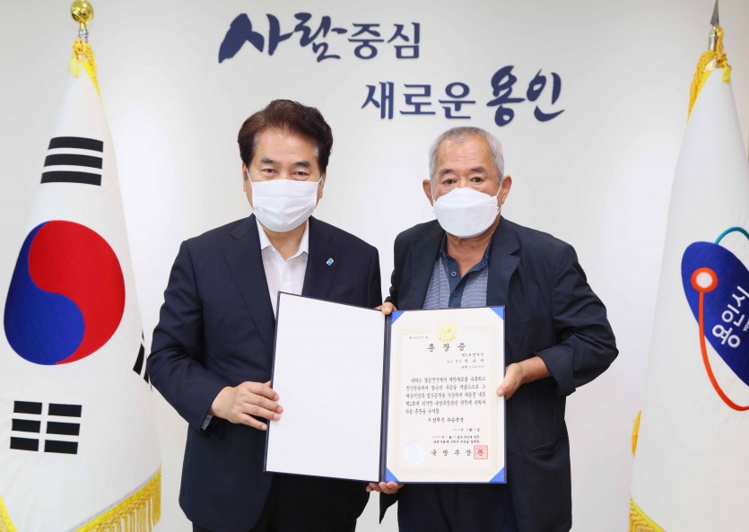 6.25전쟁 참전유공자 유족에 화랑무공훈장 전수 - 용인시, 고(故) 박규서 병장 아들에…국방부 무공훈장 찾아주기 사업 일환 - 김경순 기자 2020-08-20 23:51 가 본문내용 확대/축소 본문 6.25전쟁 참전유공자 유족에 화랑무공훈장 전수6.25전쟁 참전유공자 유족에 화랑무공훈장 전수 용인시는 20일 시장실에서 6.25전쟁 참전유공자인 고(故) 박규서 병장의 아들 박광현씨에게 화랑무공훈장을 전수했다고 밝혔다. 이날 전수식은 6.25전쟁 유공자에게 뒤늦게나마 훈장을 전하기 위한 국방부의 무공훈장 찾아주기 사업으로 이뤄졌다. 백군기 시장은 “6.25전쟁 당시 조국을 위해 헌신한 고(故) 박규서님의 전공을 오늘에서야 화랑무공훈장으로 전해드려 죄송한 마음”이라고 말했다. 또 “참전 유공자와 유가족에게 예우를 다하고 아직 찾지 못한 수훈자 발굴에 최선을 다할 것”이라고 말했다. 좋아요 0 싫어요 0 김경순 기자 기자의 다른기사 보기 목록 댓글목록 이전글 용인동부서, 학교 밖 청소년 검정고시 시험장 지원활동 실시 20.08.24 다음글 용인시, 용인 낙우회서 수해민에 우유 300박스 기탁 20.08.19