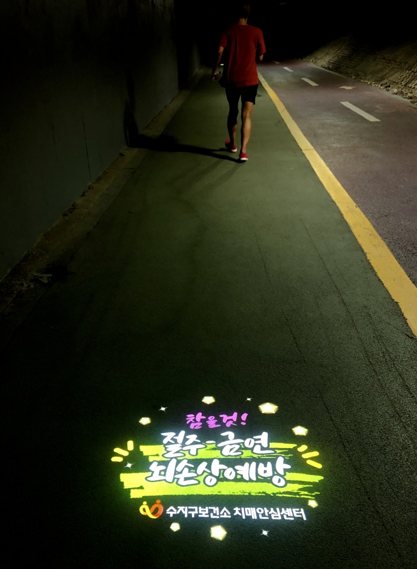 새 로고젝터를 접한 주민은 “어둡고 으스스했던 산책로 다리 밑 구간에 예쁜 글씨가 나오는 조명이 생겨 밝고 기분이 좋다”며 “조명에 있는 글처럼 산책하는 즐거움이 생겼고, 조만간 치매안심센터에 가서 치매 검사도 해볼 생각이다”라고 말했다.