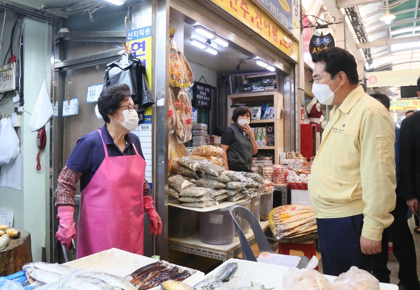 백군기 용인시장은 29일 추석을 앞두고 처인구 김량장동 용인중앙시장을 찾아가 직접 장을 보며 상인들을 격려했다.