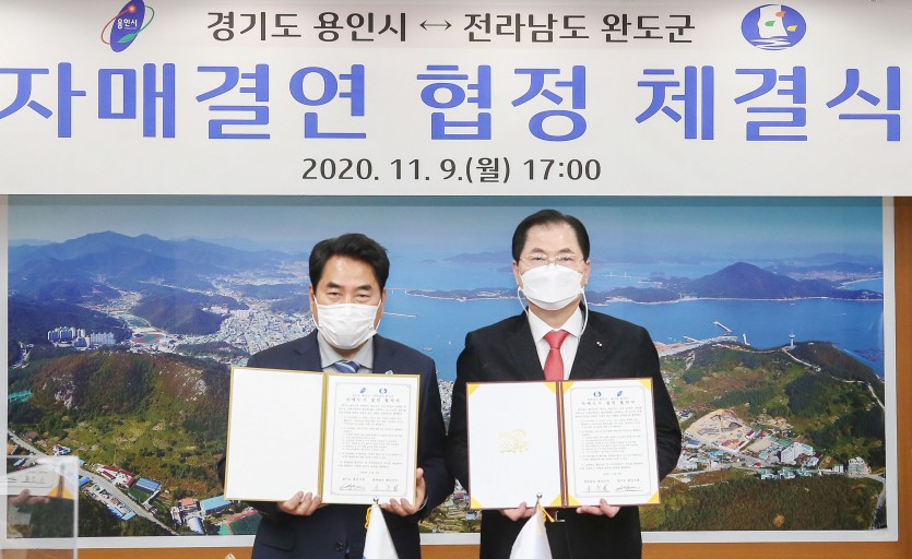 용인시, 전남 완도군과 상호 발전‧우호 증진 자매결연 경제・관광・행정 등 5개 분야 10개 세부사업서 활발한 교류 약속 - 김경순 기자 2020-11-10 00:06 가 본문내용 확대/축소 본문 용인시, 전남 완도군과 상호 발전‧우호 증진 자매결연용인시, 전남 완도군과 상호 발전‧우호 증진 자매결연 용인시는 9일 전남 완도군과 상호 발전‧우호 증진을 위한 자매결연을 맺었다고 밝혔다. 이번 협약은 완도군이 시에 먼저 교류를 제안한데서 비롯됐다. 완도군은 인구 5만의 해양도시로 아시아 최초의 슬로시티인 ‘청산도’가 있으며 천혜의 환경과 해양자원을 보유하고 있다. 시는 코로나19가 진정 국면에 들어서면 경제‧산업, 관광, 행정 등 5개 분야 10개의 세부사업을 통해 본격 교류를 추진키로 했다. 우선, 완도군의 우수 특산물인 전복‧해조류 등을 시민들에게 저렴히 공급할 수 있도록 판로를 지원하고 용인시민이 완도군의 주요 관광시설 이용할 때 할인 혜택 등을 제공키로 했다. 각종 박람회나 행사 등을 성공적으로 치러낼 수 있도록 양 지자체가 협력하고 우수한 정책이나 행정 정보 등을 공유한다. 또 지구 온난화로 인한 미래 농업 환경에 대비해 완도군으로부터 아열대 작물로 알려진 한라봉, 비파, 망고 등의 재배기술을 전수받을 계획이다. 이 밖에도 다양한 문화, 관광, 민간 분야에서 활발한 교류를 추진키로 했다. 이날 협약식은 완도군청에서 진행됐으며 백군기 용인시장, 신우철 완도군수 등 20명이 참여했다. 이 자리에서 신 군수는 “‘글로벌 경제중심도시’로 거듭나고 있는 용인과 자매결연을 맺게 돼 기쁘다”며 “서로가 함께 성장‧발전할 수 있도록 활발히 교류하길 바란다”고 말했다. 백 시장은 “완도군은 국제해조류박람회를 개최할 정도로 풍부한 해양자원과 경쟁력을 갖췄다”며“양 지자체가 미래지향적인 혁신을 추구하는 공동체로 거듭난다면 주민들의 삶의 질을 높이고 도시의 경쟁력을 강화할 수 있을 것”이라고 답했다. 용인시는 시민에게 저렴한 수산물 공급과 관광시설 할인혜택 등을 주기 위해 완도군과의 자매결연에 이어 향후 해양도시로 발전하고 있는 경남 사천시와도 자매결연을 추진할 계획이다. 좋아요 0 싫어요 0 김경순 기자 기자의 다른기사 보기 목록 댓글목록 이전글 한국전력 동용인지사 청년공간에 후원품 지원 20.11.10 다음글 용인시, GAP 인증 받은 ‘참드림 백옥쌀’첫 출시 20.11.06