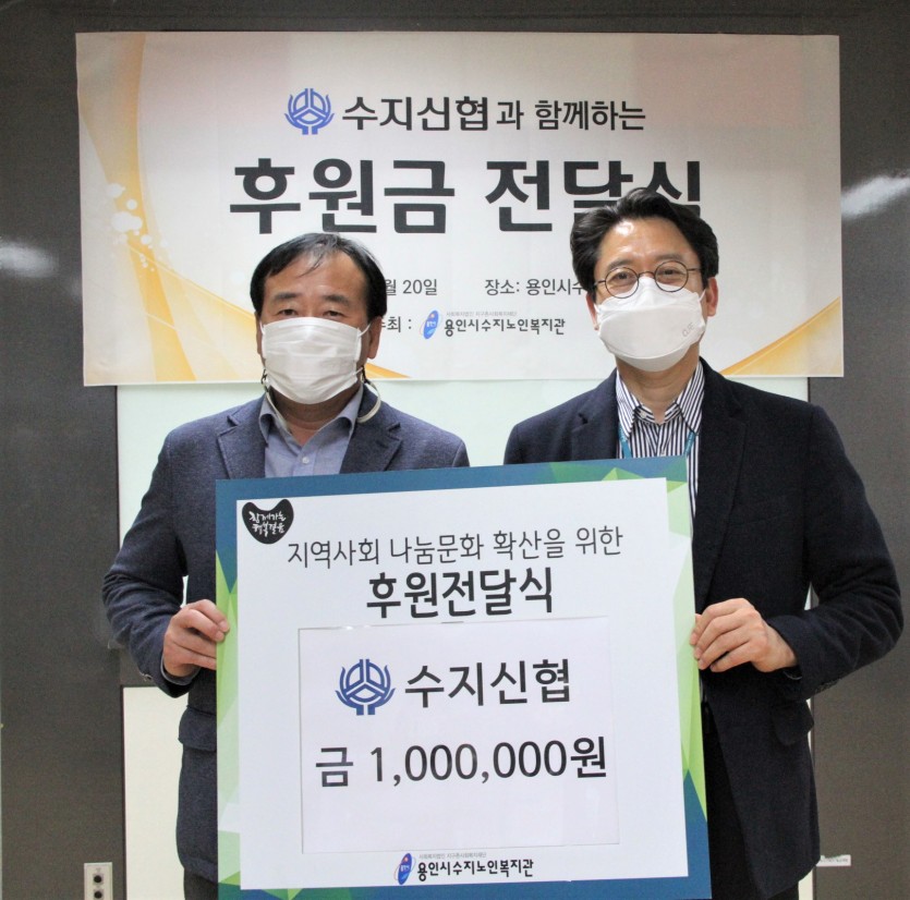 [용인시수지노인복지관, 수지신협과 후원금 전달식 진행] [지역사회 내 나눔 문화 확산을 위한 후원금 전달] 김경순 기자 2020-11-23 19:20 가 본문내용 확대/축소 본문 [용인시수지노인복지관, 수지신협과 후원금 전달식 진행] 지구촌사회복지재단에서 운영하고 있는 용인시수지노인복지관(관장 한근식)은 지난 20일(금) 수지신협(이사장 이기찬)으로부터 지역사회 내 나눔 문화 확산을 위한 후원금 100만원을 전달받았다고 알렸다. 수지신협(이사장 이기찬)은 이번 나눔을 통해 지역사회 내 나눔 문화 확산에 참여하였으며, “모두가 어려운 시기인 요즘, 누구보다 경제적 어려움을 겪고 계시는 지역 내 어르신에게 도움이 되고 싶었다.“고 소감을 전했다. 한근식 관장은 “어려운 시기임에도 힘든 나날을 보내고 있는 지역 내 어르신들을 위해 뜻깊은 나눔을 해주신 수지신협에 감사함을 전한다.”며 인사를 전했다. 좋아요 0 싫어요 0 김경순 기자 기자의 다른기사 보기 목록 댓글목록 이전글 7대 김윤석 신임 용인시디지털산업진흥원장, 20.11.23 다음글 올해 자전거보험 185명 1억2500만원 혜택 20.11.23