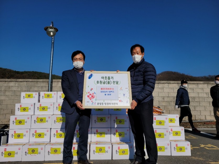 용인시 처인구, 민간단체 두 곳서 김치와 쌀 등 기탁 김경순 기자 2020-11-23 19:41 가 본문내용 확대/축소 본문 용인시 처인구, 민간단체 두 곳서 김치와 쌀 등 기탁용인시 처인구, 민간단체 두 곳서 김치와 쌀 등 기탁 용인시 처인구는 23일 중앙동 단체협의회와 용인 라이온스 클럽에서 어려운 이웃에 전해달라며 김치와 쌀 등을 기탁했다고 밝혔다. 통장협의회, 주민자치위원회 등 7개 단체로 구성된 중앙동 단체협의회는 이날 직접 담근 10㎏짜리 김치 100박스를 기탁했다. 한병국 단체협의회장은 “어려운 이웃들의 겨울나기에 도움이 되었으면 좋겠다”고 했다. 이날 용인 라이온스클럽도 중앙동, 역삼동, 유림동 행정복지센터에 각각 10㎏짜리 김치 50상자와 10㎏짜리 쌀 30포를 기부했다. 박창무 용인라이온스클럽 회장은 “양이 많지는 않지만 소외된 이웃들에게 작은 보탬이 되었으면 좋겠다”고 말했다. 각 동은 이날 기탁된 물품을 관내 한부모가정, 홀로 어르신 등 생활이 어려운 이웃들에게 전달할 예정이다. 좋아요 0 싫어요 0 김경순 기자 기자의 다른기사 보기 목록 댓글목록 이전글 용인시 관내 어린이집 865개소 23일부터 휴원 20.11.23 다음글 대형폐기물 간편 배출 서비스 도입 업무 협약 20.11.23