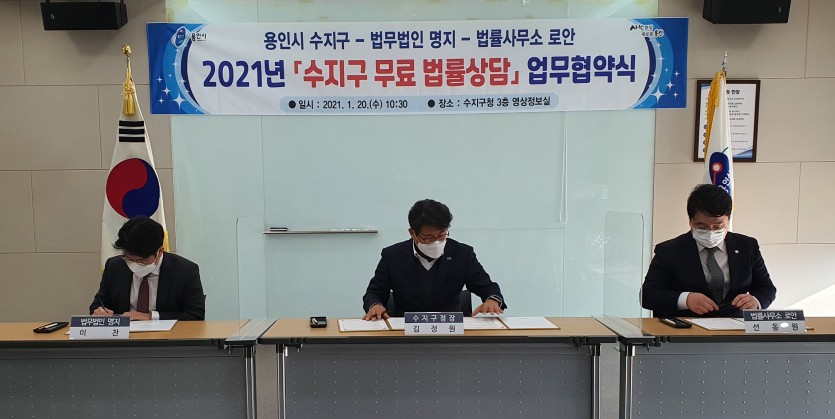 수지구, 비대면 무료법률상담 지원 업무협약 - 법무법인 2곳과 제휴…구민 누구나 본인인증 후 무료로 상담 가능 김경순 기자 2021-01-20 22:18 가 본문내용 확대/축소 본문 수지구, 비대면 무료법률상담 지원 업무협약수지구, 비대면 무료법률상담 지원 업무협약 용인시 수지구는 20일 법무법인 명지, 법률사무소 로안 등 관내 법무법인 2곳과 비대면 무료 법률상담 지원을 위한 업무협약을 체결했다고 밝혔다. 코로나19로 인해 대면 상담이 어려운 구민들을 위해 비대면으로 법률상담을 제공하기 위한 것이다. 구는 이번 업무협약에 맞춰 구청 홈페이지에 사이버 법률상담 코너를 개설해 운영한다. 비대면 법률상담은 수지구민 누구나 무료로 이용할 수 있으며, 휴대전화를 통한 본인인증 후 상담 글을 게시하면 3영업일 내에 분야별 전문 변호사가 회신한다. 단, 재판 중인 사건은 상담 신청할 수 없다. 구 관계자는 “비대면 무료 법률상담으로 구민들이 일상생활에서 발생할 수 있는 금전 문제, 사고 등 법률과 관련한 어려움을 해소하길 바란다”며“구민들을 위한 다양한 지원방안을 발굴해 나가겠다”고 말했다. 좋아요 0 싫어요 0 김경순 기자 기자의 다른기사 보기 목록 댓글목록 이전글 이재명 도지사 - 경기도시장군수협의회(회장 오산시장 곽상욱) 임원진 간담회 개최 21.01.20 다음글 시 공유재산 임차한 소상공인에 임대료 80% 감면 21.01.20