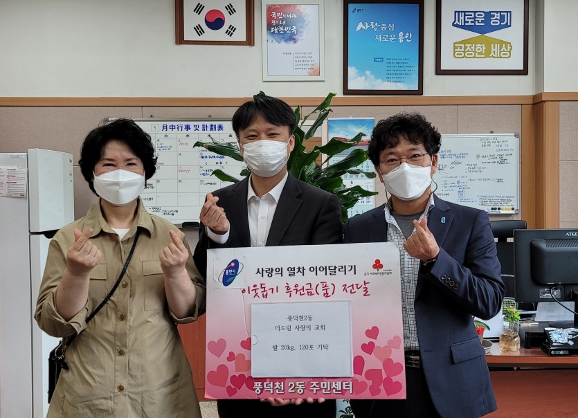 풍덕천2동, 관내 교회서 백미 240kg 기탁 김경순 기자 2021-05-06 19:51 가 본문내용 확대/축소 본문 풍덕천2동, 관내 교회서 백미 240kg 기탁풍덕천2동, 관내 교회서 백미 240kg 기탁 용인시 수지구 풍덕천2동은 지난 4일 더드림 사랑의 교회가 지역 내 어려운 이웃을 위해 써달라며 20㎏짜리 백미 120포를 기탁했다고 밝혔다. 이날 이상훈 목사를 비롯한 관계자들이 동 행정복지센터를 찾아 쌀을 직접 전달했다. 동은 이날 전달받은 쌀을 기초생활수급자를 비롯한 관내 취약계층에 전달할 예정이다. 이상훈 더드림 사랑의 교회 목사는 “어려운 이웃에 보탬이 되길 바라는 마음으로 기탁했다”며 “앞으로도 나눔을 이어 나가겠다”고 말했다. 동 관계자는 “어려운 이웃을 위해 따뜻한 나눔을 실천해주셔 감사하다”며 “도움이 필요한 이웃에게 잘 전달하겠다”고 말했다. 좋아요 0 싫어요 0 김경순 기자 기자의 다른기사 보기 목록 댓글목록 이전글 용인도시공사,‘용인시 지속발전 토론회’개최 21.05.06 다음글 어린이날·어버이날 맞아 용인시에 따뜻한 나눔 넘쳐 21.05.06