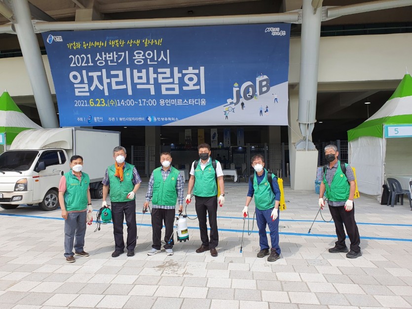 김춘연 용인시새마을회 회장은 백신 예방접종 실시로 다소 마음이 안심되지만 많은 사람들이 다녀가는 일자리 박람회장이 코로나 19로 부터 안전해 지도록 방역에 힘쓰는 새마을지도자 방역봉사단의 노고에 감사하다. 고 말했다.