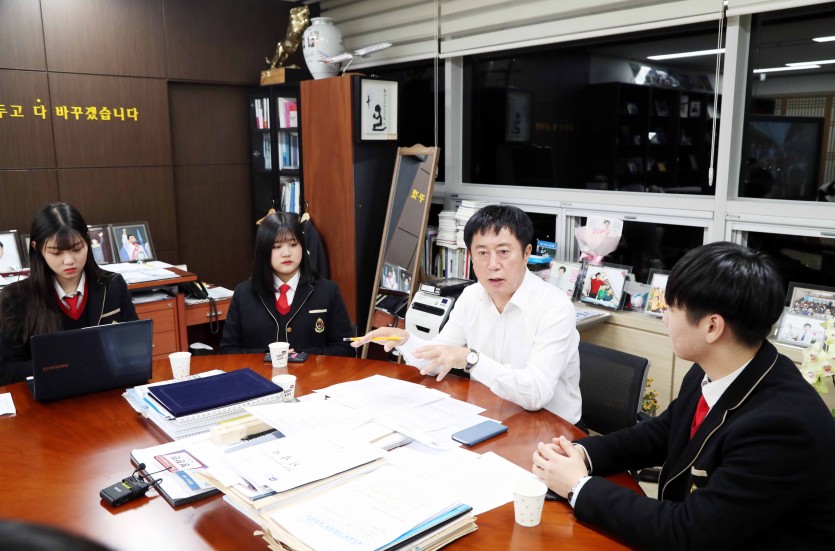 흥덕고학생 정찬민시장 인터뷰요청 전격 수용 소비환경뉴스 2017-11-01 00:26 가 본문내용 확대/축소 본문 흥덕고학생 정찬민시장 인터뷰요청 전격 수용흥덕고학생 정찬민시장 인터뷰요청 전격 수용흥덕고학생 정찬민시장 인터뷰요청 전격 수용 정찬민 용인시장이 지난 31일 학교과제 수행을 위해 고등학생들이 요청한 인터뷰를 적극 수용해 40여분간 대화를 나누며 과제준비를 도와 눈길을 끌고 있다. 이날 정 시장을 방문한 학생들은 흥덕고등학교 2학년 학생 5명. 이들은 학교에서 내준‘사회참여대회’과제를 준비하기 위해 ‘용인시의 치매정책에 바란다’로 정하고 자료수집과 공부를 하던 중 용인시장의 의견을 듣기로 했다. 그래서 과감히 비서실에 전화를 걸어 혹시나 하고 시장 면담을 요청했는데 정 시장이 이를 전격 수용한 것이다. 이날 시장실을 찾은 학생들은 용인시의 치매 정책 관련 홍보, 법률 제정과 고령화시대의 노인 주거시설 문제 등 다양한 질문을 던졌다. 인터뷰에 참석한 김주은 학생은 “치매 관련 혜택 등의 정보가 치매 환자의 가족이나 간병인 등에게 전달이 안 되는 것 같다”며 치매 분야 홍보 현황에 대해 질문했다. 이에 대해 정 시장은 “읍면동 주민 대표들로 구성된 기관․단체, 마을과 아파트 단지 방송과 반상회, 홍보물 배포, 언론과 방송 등 다양한 방법으로 치매 관련 시책을 적극적으로 알리고 있다”고 답했다. 또 치매상담센터 운영과 관련된 규정이 있는지를 묻는 류기명 학생의 질문에는 “치매상담센터 운영에 관한 조례는 지난해 10월에 제정돼 운영되고 있는데 시 홈페이지에서 ‘정보공개’ ‘자치법류란’에 게시됐으니 확인해보라”고 상세히 일러주기도 했다. 이밖에도 정 시장과 학생들은 치매 환자들이 치료비나 이동수단의 비용 부담 해소 등 치매노인과 가족의 고통을 덜어주는 복지정책의 필요성에 대해 진지한 대화를 나눴다. 특히 정 시장은 학생들에게 용인시의 이웃돕기 운동인 개미천사(1004) 기부를 소개하며 “1명이 1,004원을 기부하는 게 적은 금액 같지만 많은 용인시민들이 동참하면 복지사각지대 노인 문제를 해결하는데 큰 힘을 발휘할 수 있을 것”이라고 설명했다. 이날 시장실을 찾은 학생들은 “시장님이 인터뷰에 응해주신 것도 고마운데 질문마다 세심하게 설명해 주셔서 너무 좋았다”며 “현장이나 자료 조사할 때 나오지 않았던 사실, 몰랐던 사실을 많이 알게 돼 과제 준비에 큰 도움이 됐다”고 말했다. 정 시장은 “학생들이 지역에 대해 큰 관심을 갖고 있어서 무척 고맙고 용인의 미래가 참 밝다”며 “앞으로도 학생들의 과제면담이나 진로체험을 위해 시장실을 적극 개방하겠다”고 말했다. 좋아요 0 싫어요 0 소비환경뉴스 기자의 다른기사 보기 목록 댓글목록 이전글 독서감상문대회 수상자 31명 선정 17.11.03 다음글 이사주당의 친정과 시댁에서 태교신기 정신계승 17.11.01