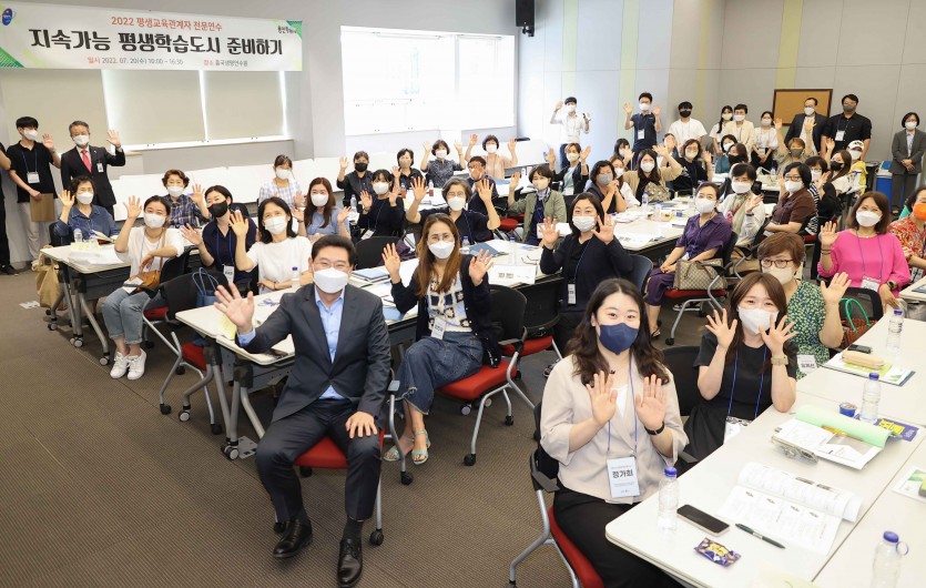 용인시, 지속 가능 평생학습도시 조성 위한 전문 연수 - 평생학습 관계자 역량 강화 ‧ 평생학습 의제 발굴 ‧ 장애인 인식개선 등 김경순 기자 2022-07-21 23:15 가 본문내용 확대/축소 본문 용인시, 지속 가능 평생학습도시 조성 위한 전문 연수 용인시가 지속 가능한 평생학습도시 조성을 목표로 지난 20일 관내 평생학습 관계자들의 실무 역량 강화를 위한 전문 연수를 진행했다고 21일 밝혔다. 기흥구 상하동 흥국생명연수원에서 열린 행사에는 이상일 용인특례시장을 비롯해 관내 장애인 평생학습관 실무자와 평생학습동아리, 평생학습마을 관계자 등 90여 명이 참여했다. 이날 행사에선 국가평생교육진흥원 평생교육정책본부 임형균 실장이 ‘국가평생교육 동향 및 사업’에 대해서 설명하고, 한국장애인인권배움터 김영민 소장이 장애인에 대한 인식개선을 주제로 강의했다. 또 퍼실리테이터(회의가 원활하게 진행되도록 돕는 사람)의 진행으로 ‘2022년 용인시 평생학습 의제 발굴하기’ 워크숍을 열었다. 참가자들은 내년 평생교육 신규 사업 발굴을 위한 아이디어를 자유롭게 제안하고 협력 네트워크를 구축하는 시간을 가졌다. 이 시장은 “이 자리는 평생교육 관계자들의 전문역량 강화를 넘어 110만 용인시민 누구나 쉽게 배움을 누릴 수 있는 지속 가능한 평생학습도시의 초석을 다지기 위해 마련됐다”며 “시민들이 만족할 수 있는 실질적인 평생교육 프로그램 마련으로 수준 높은 평생교육도시를 만들어가겠다”고 말했다. 용인시가 지속 가능한 평생학습도시 조성을 목표로 지난 20일 관내 평생학습 관계자들의 실무 역량 강화를 위한 전문 연수를 진행했다고 21일 밝혔다. 기흥구 상하동 흥국생명연수원에서 열린 행사에는 이상일 용인특례시장을 비롯해 관내 장애인 평생학습관 실무자와 평생학습동아리, 평생학습마을 관계자 등 90여 명이 참여했다. 이날 행사에선 국가평생교육진흥원 평생교육정책본부 임형균 실장이 ‘국가평생교육 동향 및 사업’에 대해서 설명하고, 한국장애인인권배움터 김영민 소장이 장애인에 대한 인식개선을 주제로 강의했다. 또 퍼실리테이터(회의가 원활하게 진행되도록 돕는 사람)의 진행으로 ‘2022년 용인시 평생학습 의제 발굴하기’ 워크숍을 열었다. 참가자들은 내년 평생교육 신규 사업 발굴을 위한 아이디어를 자유롭게 제안하고 협력 네트워크를 구축하는 시간을 가졌다. 이 시장은 “이 자리는 평생교육 관계자들의 전문역량 강화를 넘어 110만 용인시민 누구나 쉽게 배움을 누릴 수 있는 지속 가능한 평생학습도시의 초석을 다지기 위해 마련됐다”며 “시민들이 만족할 수 있는 실질적인 평생교육 프로그램 마련으로 수준 높은 평생교육도시를 만들어가겠다”고 말했다. 좋아요 0 싫어요 0 김경순 기자 기자의 다른기사 보기 목록 댓글목록 이전글 “여름철, 고추 병해충 주의하세요!” 22.07.21 다음글 ‘유충 없는’ 용인시 수돗물 안심하고 사용하세요! 22.07.21