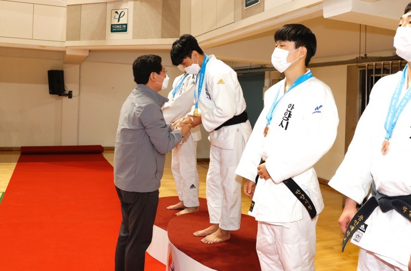 특히 시상식에 참석해 수상한 용인시 선수들의 목에 직접 메달을 걸어주었다.