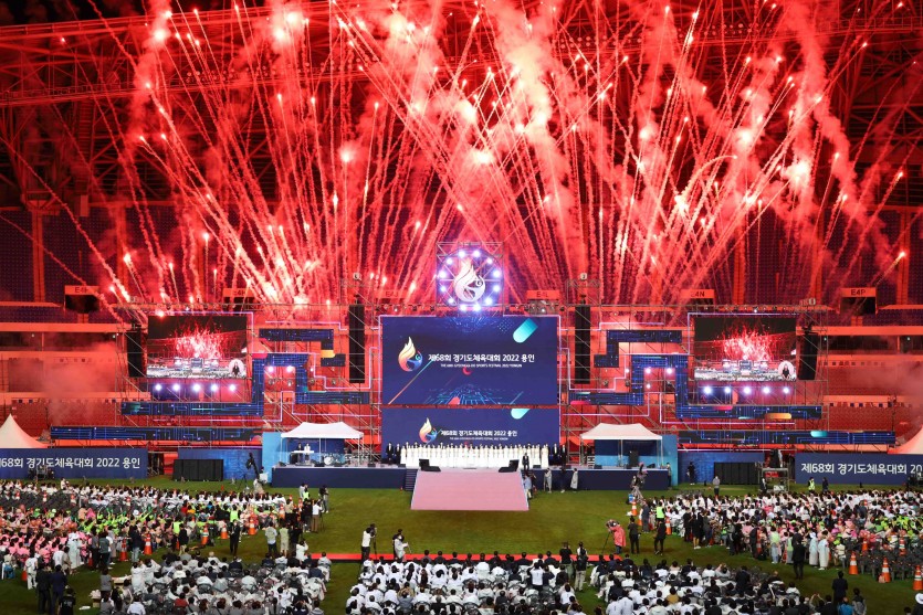 용인서 첫 성화 타오르다, 경기도종합체육대회 개막 - 이상일 시장“글로벌 반도체중심도시에서 화합의 장을 만듭시다”- - 전 체조 국가대표 여홍철이 성화대 최종 점화, 축제 시작되다 - 김경순 기자 2022-08-25 20:42 가 본문내용 확대/축소 본문 용인서 첫 성화 타오르다, 경기도종합체육대회 개막용인서 첫 성화 타오르다, 경기도종합체육대회 개막용인서 첫 성화 타오르다, 경기도종합체육대회 개막용인서 첫 성화 타오르다, 경기도종합체육대회 개막 용인특례시에서 처음으로 ‘경기도종합체육대회’의 막이 올랐다. 용인시 38개 읍면동 순회를 마친 성화가 마침내 용인 미르스타디움을 밝혔다. ‘제68회 경기도체육대회 2022 용인’의 개회식이 25일 용인미르스타디움(용인시 처인구 삼가동)에서 개최됐다. ‘경기도의 함성, 용인에서 하나로’라는 슬로건으로 이날부터 27일까지 3일간 열리는 이 대회는, 경기도내 31개 시군 1만 여명의 선수들이 축구, 수영 등 25개 종목에 출전해 뜨거운 경쟁을 펼치게 된다. 이날 개회식에는 이상일 용인특례시장을 비롯해 김동연 경기도지사, 염종현 경기도의회 의장, 윤원균 용인시의회 의장 등 내빈들과 각 시군에서 출전한 선수와 응원단, 시민 등 1만 8000여 명이 참석했다. 차기 개최지인 성남시 선수단을 앞세운 31개 시군 선수단이 차례로 입장했다. 조효상 용인시체육회장이 개회를 선언했고, 가수 에일리의 선창으로 애국가가 울려 퍼졌다. 용인시립합창단과 용인소년소녀합창단 등 연합 합창단이 부른 우렁찬 ‘승리의 노래’와 함께, 대회기가 힘차게 펄럭이며 게양됐고, 소프라노 박지현씨는 세계인이 사랑하는 노래인 ‘넬라 판타지아(환상속에서)’를 불렀다. 전날부터 이틀간 용인시 38개 읍면동을 순회한 성화는 4명의 주자와 함께 개회식장에 도착, 마지막 성화 봉송 주자로 나선 여홍철 경희대학교 교수(전 체조 국가대표 선수, 2022 경기도종합체육대회 홍보대사)가 성화 불꽃을 합쳐 무대에 마련된 화반으로 옮겼다. 무대에 오른 여 교수가 화반에 점화하는 순간 성화를 담은 화반이 공중으로 떠올랐고, 불꽃은 로켓을 타고 개회식장 상공을 가르며 순식간에 성화대에 점화됐다. 성화는 27일까지 미르스타디움 성화대에서 타오르며 1390만 경기도민 화합의 축제를 밝히게 된다. 이상일 용인특례시장은 환영사에서 “경기도체육대회는 ‘놀라운 미래’(대회 개회식의 주제)를 향한 화합의 축포이다. 대회의 성공 개최를 위해 많은 성원을 해주신 시·군 체육 관계자들과 시민 여러분께 감사드린다. 출전한 모든 선수들이 갈고닦은 기량을 한껏 발휘해 좋은 성적을 거두기 바란다”며 “최상의 경기를 펼칠 수 있도록 용인특례시는 폐막일까지 최선을 다하겠다”고 말했다. 또 “대한민국 반도체 산업의 출발지인 용인은 놀라운 미래를 추구하는 도시라고 할 수 있다. 세계적 첨단기업을 품으며 글로벌 반도체 중심도시로 성장해나가고 있다”고 강조하며 “대한민국 성장 동력의 핵심도시, 글로벌 도시 용인에서 경기도민과 선수단이 아름답고 뜨거운 화합의 장을 만들어 달라”고 당부했다. 대회 개막을 알리는 전광판엔 이 시장의 시정 비전인 ‘함께 만드는 미래, 용인 르네상스’라는 슬로건이 선명하게 떠올랐다. 개회식에 이어 진행된 축하공연에선 가수 에일리와 이찬원, 정동원, 비오, 한담희 등이 출연해 멋진 무대를 펼쳐 큰 박수를 받았다. 한편 개회식과 축하공연은 경기도체육대회 최초로 TV(KBS N)를 통해 생중계됐다. 좋아요 0 싫어요 0 김경순 기자 기자의 다른기사 보기 목록 댓글목록 이전글 용인특례시 포곡 지구 주민들 국토부 앞에서 토지수용 결사반대 시위 22.08.25 다음글 용인특례시, 경기도체육대회 유도 2개 체급 금메달 22.08.24