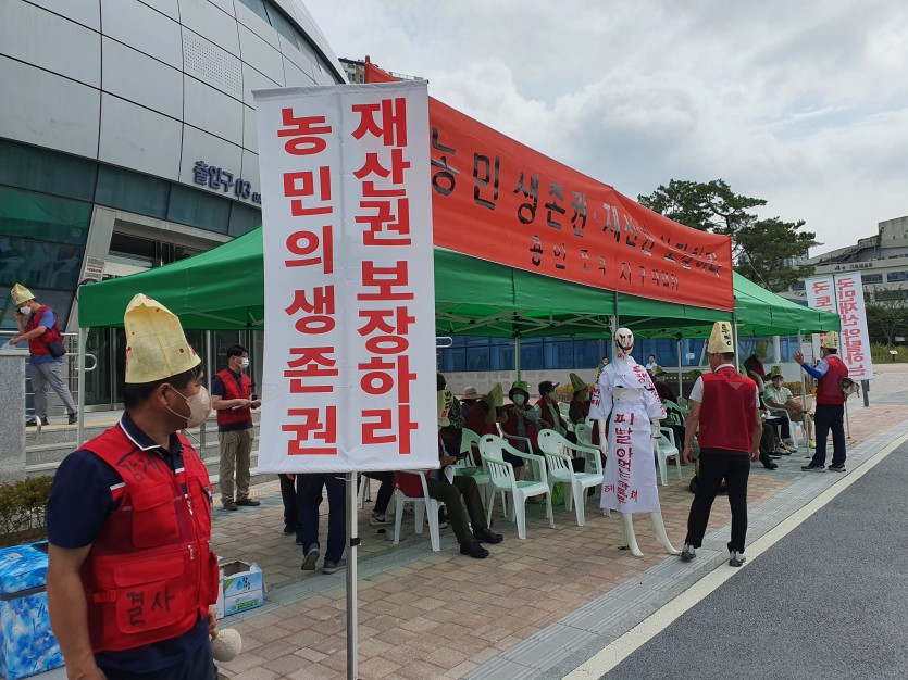 용인특례시 포곡 지구 주민들 국토부 앞에서 토지수용 결사반대 시위 "나 죽으면 그위에 아파트 지어라"고 적은 마네킹들 앞세우고 규탄 집회 김경순 기자 2022-08-25 20:45 가 본문내용 확대/축소 본문 용인특례시 포곡 지구 주민들 국토부 앞에서 토지수용 결사반대 시위용인특례시 포곡 지구 주민들 국토부 앞에서 토지수용 결사반대 시위용인특례시 포곡 지구 주민들 국토부 앞에서 토지수용 결사반대 시위 용인특례시 포곡 공공지원 민간임대 주택 공급 촉진 지구 반대 대책 위원회(위원장 김학봉)는 25일 오전8시부터 오후 2시까지 세종시 국토부청사 앞에서 토지 수용 결사 반대 집회를 강행 했다. 이날 50여명의 대책위원들은 트럭과 버스를 동원해 세종시까지 내려가 국토부 앞에서 '강제토지 수용 반대'등의 현수막을 걸고 LH와 놀아나는 어용집단 국토부는 각성하라고 외치며 시위를 펼쳤다. 대책위는 "나 죽으면 그위에 아파트를 지어라"고 적은 마네킹들을 앞세우고 규탄 대회를 열었고 마네킹에 목을 메다는 포퍼먼스를 벌이다 경찰의 제지를 받기도 했다. 주민들은 "생태계를 파괴하는것은 물론 국토의 돌이킬수없는 훼손을 자행하고 단지 목적이 정당하다는 이유만으로 주민들의 생존권등 기본권을 함부로 침해햐는 LH와 국토부를 규탄하며 끝까지 저항할것"을 결의 했다. 한편 김위원장등 대책위원 들은 국토교통부 담당 행정사무관을 면담하고 "국토부 장관이 최근 인터뷰에서 반대가 심한 지구는 고려해보겠다고 했으니 지구 지정이 아직 되지 않는 용인 포곡지구는 백지화 해줄것"을 요구했다. 용인 포곡 공공지원 민간임대 주택 추진은 한국토지주택공사(LH)가 국토교통부에 처인구 포곡읍 마성리·영문리 일원(45만6738㎡)에 3800여 가구를 공급하는 내용의 공공지원 민간임대주택 사업을 제안해 지닌 2월25일 공람공고하면서 주민들의 반발을 사고있는 곳이다. 용인포곡지구대책위원회 부위원장 이문구 010-7456-5555 좋아요 0 싫어요 0 김경순 기자 기자의 다른기사 보기 목록 댓글목록 이전글 용인시새마을회, 새마을지도자 양성 위한 교육 진행 22.08.27 다음글 용인서 첫 성화 타오르다, 경기도종합체육대회 개막 22.08.25