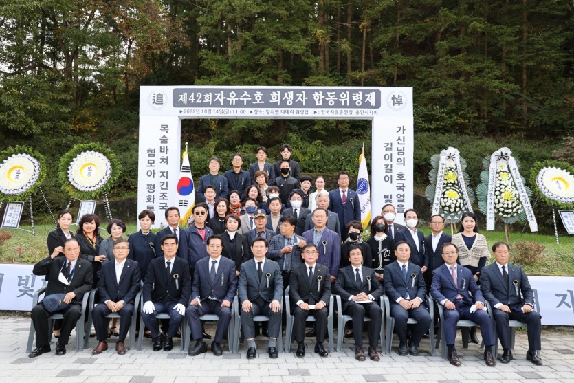이상일 용인특례시장, "호국영령들의 뜻 받들어 자유민주주의 지속·발전 위해 노력해야" - 처인구 양지면 대대리 자유수호희생자 합동위령제 참석해 희생자 넋 기려 - 소비환경뉴스 2022-10-14 20:19 가 본문내용 확대/축소 본문 이상일 용인특례시장, "호국영령들의 뜻 받들어 자유민주주의 지속·발전 위해 노력해야" 이상일 용인특례시장은 14일 처인구 양지면 대대리에서 열린 자유수호희생자 합동위령제에 참석해 6ㆍ25전쟁 당시 북한군에 의해 학살된 희생자들의 넋을 기렸다. 자유수호희생자 합동위령제는 1950년 9월 21일 당시 용인, 수원, 평택, 화성, 광주, 남양주 등 6개 지역 민간인 187명이 북으로 끌려가다 처인구 양지면 대대리 일원에서 북한군에 의해 집단 학살된 이들의 고귀한 희생을 되새기고자 한국자유총연맹 용인시지회 주관으로 1985년부터 이어오고 있다. 이날 행사에는 이상일 용인특례시장, 윤원균 용인특례시의회 의장, 박동희 한국자유총연맹 용인시지회장 등 관계자 50여명이 참석했다. 이상일 용인특례시장과 윤원균 용인특례시의회 의장의 추도사, 박동희 한국자유총연맹 용인시지회장의 추념사, 백광호 테너의 조가, 송주현 단경예술단 대표의 진혼무, 헌화 등이 진행됐다. 이상일 용인특례시장은 추도사에서 앞서 방명록에 “대한민국의 자유를 위해 희생하신 호국영령께 고개 숙여 감사인사 올립니다”라며 “숭고한 뜻을 잘 이어 나가겠다”고 추도 글을 남겼다. 이상일 용인특례시장은 추도사에서 “지금 우리가 누리고 있는 자유는 거저 주어진 것이 아니다”라며 “자유수호를 위해 희생하신 호국영령들의 뜻을 되새기면서 자유민주주의 체제를 지속, 발전시키기 위해 노력해야 한다”고 말했다. 좋아요 0 싫어요 0 소비환경뉴스 기자의 다른기사 보기 목록 댓글목록 이전글 장애인 복지시설 종사자 위해 힐링·문화 워크숍 22.10.14 다음글 서농동, 신명호 베이커리 '착한가게 5호점'으로 신규 위촉 22.10.14