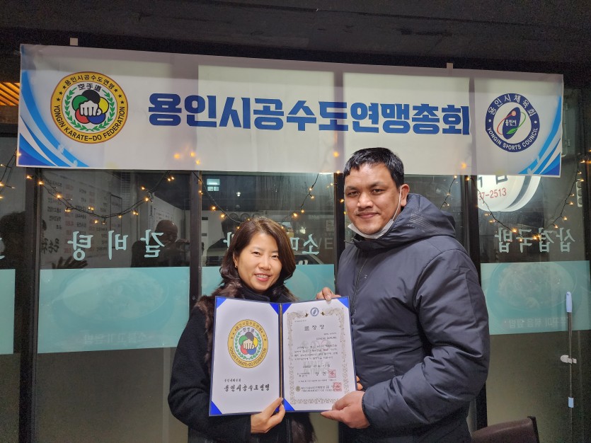 용인특례시공수도연맹 2023년도 정기총회 개최. 용인특례시 연맹회장배 공수도 대회개최 및 국제대회 개최 목표!! 네팔공수도 지도자 겸 국제심판 Gurung Prem Bahadur 국제이사로 선임!! 김경순 기자 2023-02-14 22:10 가 본문내용 확대/축소 본문 용인특례시공수도연맹 2023년도 정기총회 개최. 오는 13일 용인특례시공수도연맹(회장 김향숙)은 용인특례시 처인구 김량장동 소재 음식점에서 2023년도 이사회 및 정기총회를 개최하였다. 이날 총회에서는 2022년도 용인특례시연맹회장배 공수도대회 성공적 개최를 비롯 코리아오픈 국제공수도선수권대회 종합3위, 전국대회 준우승 등 우수한 사업결과 보고 및 결산을 승인하였고, 2023년도 사업계획으로는 전국대회 및 국제대회 개최의 건 등과 예산을 원안대로 승인하였다. 그리고 네팔공수도 지도자 겸 국제심판인 Gurung Prem Bahadur 씨를 국제이사로 선임하여 국제대회 및 국제교류 등에 이바지 할 것으로 기대한다. 이날 김향숙 회장은 "2023년도 계묘년 토끼가 껑충껑충 뛰어오르듯 용인특례시공수도연맹이 껑충 도약하는 한해로 함께 만들어 갈 수 있도록 적극지원하고 노력 하겠다." 라고 말했다. 김향숙 회장은 코아건축사사무소 대표로서 사무소 이름인 코아(Core)처럼 기초가 단단한 건축을 지향하며 건축설계, 건축감리, 해체감리, 인테리어설계, 부동산컨설팅 업무를 진행하고 있고, 특히 지난 12월 23일 개최된 ‘2022 대한민국 고객감동&혁신경영 브랜드대상’에서 ‘건축설계 부문 대상’을 수상했다. 한편, 한해 공수도 발전에 기여한 선수 및 지도자, 임원들에 대한 유공자 시상도 했다. 최우수 선수상 박준하(용인고3) 최우수 지도자상 권순규(흥덕고교사) 최우수 심판상 김민규(국제심판) 최우수 임원상 김명환(용인대) 최우수 단체상 용인시국제무예센터 팀공수도(이대규) 공수도는 치고, 차고, 꺾고, 던지는 종합무예로 세계적으로는 '가라데'로 널리 알려진 무예이다. 좋아요 0 싫어요 0 김경순 기자 기자의 다른기사 보기 목록 댓글목록 이전글 "선배님들 경륜과 정신 계승해 용인특례시 더욱 발전시킬 것" 23.02.14 다음글 경안천 새들 23.02.14