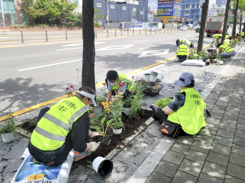 “시민 손으로 아름다운 가로수 꽃길 만들어요” - 기흥구, 신갈오거리~기흥역사거리 가로수 30주에 초화 1200본 식재 김경순 기자 2022-07-03 13:29 가 본문내용 확대/축소 본문 “시민 손으로 아름다운 가로수 꽃길 만들어요” 용인시 기흥구가 아름다운 산책로를 만들기 위해 신갈오거리~기흥역사거리 200m 구간 가로수 주변에 시민이 직접 가꾼 꽃길을 조성했다. 시의 관문인 신갈동 구도심의 낙후된 이미지를 개선하고 누구나 걷고 싶은 길을 만들기 위한 것으로 구의 가로수 돌봄사업의 일환이다. 지난 1일 진행된 행사엔 신갈동 통장협의회와 노인회 등 주민 30여 명이 참여했다. 이들은 은행나무, 느티나무 등 밋밋한 가로수 하부에 톱풀, 호스타, 은사초 등 초화류 1200본을 심어 화사한 꽃길을 만들고 주변을 깨끗하게 정리했다. 행사에 참여한 한 시민은 “주민 손으로 마을을 아름답게 단장할 수 있어 뿌듯하다”며 “이곳을 지나는 모든 이들에게 작은 힐링이 되도록 관심을 갖고 꾸준히 관리하겠다”고 말했다. 구 관계자는 “이 구간은 경전철과 버스 등 대중교통은 물론 신갈천 산책로를 이용하는 주민까지 유동 인구가 많아 경관 개선이 필요했다”며 “주민들이 직접 가꾼 꽃길을 걸으며 일상의 활기를 얻기 바란다”고 말했다. 한편 구는 아름다운 도시 미관을 유지하기 위해 시민들의 자발적 참여로 쓰레기 수거와 잡초 제거 등 가로수 관리를 하는 가로수 돌봄사업을 펼치고 있다. 6월 현재까지 약 100여명이 1인당 5주의 가로수를 관리하고 있다. 좋아요 0 싫어요 0 김경순 기자 기자의 다른기사 보기 목록 댓글목록 이전글 이상일 용인시장, “8월 25일 용인에서 뵙겠습니다” 22.07.08 다음글 동백1동, 버스승강장 5곳에 온열의자 설치 22.07.03