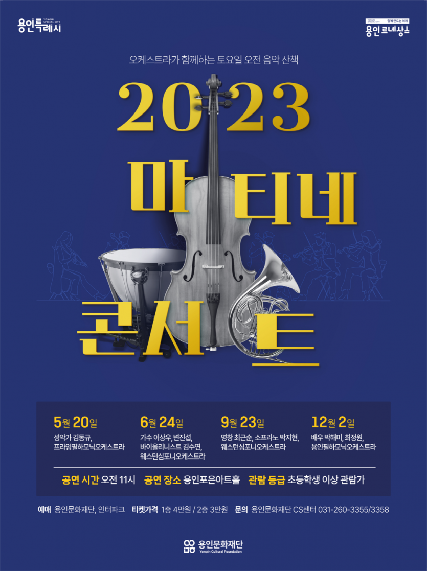 용인문화재단(이사장 이상일)의 대표적인 기획공연 <마티네콘서트>가 2023년에도 오는 5월부터 12월까지 용인포은아트홀에서 개최한다.