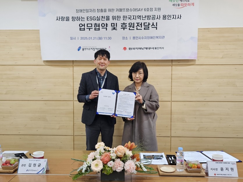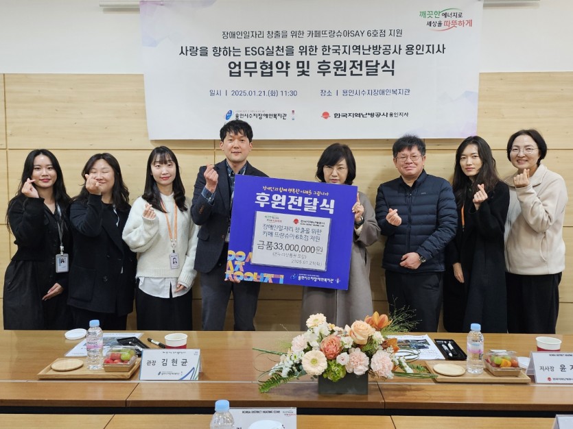 [용인시수지장애인복지관, 한국지역난방공사 용인지사, 6년째 지속되는 사람을 향하는 ESG실천 업무협약 체결] 김경순 기자 2025-01-22 17:37 가 본문내용 확대/축소 본문 [용인시수지장애인복지관, 한국지역난방공사 용인지사,[용인시수지장애인복지관, 한국지역난방공사 용인지사, 지구촌사회복지재단 용인시수지장애인복지관(관장 김현균)은 21일 한국지역난방공사 용인지사(지사장 윤지현)와 지속가능 나눔-장애인 일자리 만들기에 관한 업무협약식 및 후원전달식을 가졌다. 용인시수지장애인복지관과 한국지역난방공사 용인지사는 지난 2020년 첫 업무협약을 시작으로 6년째 장애인 취업을 위한 적극적인 일자리 창출 활동을 펼쳐나가고 있다. 카페뜨랑슈아는 중증장애인 일자리 창출과 자립을 위해 용인시수지장애인복지관에서 운영하는 카페로 지난 2024년 4월 개점한 카페뜨랑슈아 기흥도서관점에 이어 5번째 지점과 6번째 지점 개점을 준비하고 있다. 협약의 주요 내용은 ▲장애인 취업을 위한 일자리 창출(카페 창업), ▲일자리 창출을 통한 장애인 취업 훈련 지원 등이다. 한국지역난방공사 용인지사 지사장 윤지현은 “쾌적하고 좋은 시설에서 다양한 훈련을 받고 중증장애인이 지역사회와 함께 상생할 수 있게 지속적인 지원을 하겠다.”며 장애인일자리 창출에 지속적으로 기여하겠다는 마음을 전했다. 좋아요 0 싫어요 0 김경순 기자 기자의 다른기사 보기 목록 댓글목록 이전글 따뜻한 온기를 더하는 다복한 설 명절 25.01.24 다음글 용인서부소방서, 보정동 골목형 상점가 대상 소방안전교육 실시 25.01.22
