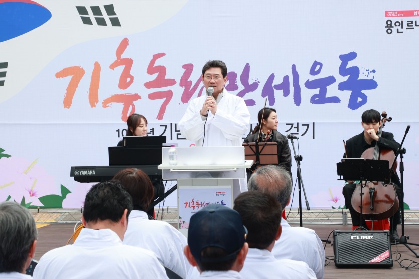 이상일 용인특례시장 “106년 전 대한독립 만세 외친 선열의 고귀한 뜻 모두가 잘 이어받으면 나라도, 용인도 더 발전할 것” 29일 동천동 머내만세운동·신갈동 행정복지센터 기흥독립만세운동 기념식 참석 - - 이상일 시장, “106년 전 그날을 기억하는 기념행사는 다시는 이 나라에 대한 침탈을 허용하지 않겠다는 것과 나라를 더 발전시키겠다는 것을 다짐하기 위한 것”- - “선열의 정신을 가슴 깊이 새기고 굳건한 심지로 훌륭한 나라 만드는 데 힘써야…이런 마음이 모이면 나라와 용인 발전” - 김경순 기자 2025-03-29 23:18 가 본문내용 확대/축소 본문 이상일 용인특례시장 “106년 전 대한독립 만세 외친 선열의 고귀한 뜻 모두가 잘 이어받으면 나라도, 용인도 더 발전할 것” 106년 전 독립을 염원하며 용인 주민들이 외친 만세 함성이 다시 울려 퍼졌다. 이상일 용인특례시장은 29일 오전과 오후 용인 수지구와 기흥구에서 차례로 열린 만세운동 기념행사에 참여해 선열의 독립 정신을 기렸다. 이 시장은 이날 오전 수지구 동천동 고기초등학교 앞에서 머내만세운동 기념행사 준비위원회와 동천마을네트워크, 고기동마을네트워크 주관으로 열린 ‘머내만세운동’ 기념식에 참여해 시민들과 만세삼창을 하며 행진하는 등 106년 전 만세운동을 재연했다. 머내만세운동은 1919년 3월 29일 당시 고기리·동천리 주민 400여명이 수지면사무소로 몰려가 만세 시위를 벌인 독립운동이다. 행사에서 이 시장은 “매년 3월 용인에선 시 차원 행사는 물론 만세 운동이 벌어진 곳에서 지역 단위로, 마을 단위로 '대한독립 만세'의 함성을 기억하고 선열의 고귀한 뜻을 이어받겠다고 다짐하는 뜻깊은 행사가 진행되고 있다”며 “이런 경우는 전국에서도 흔치 않다고 생각하며 기념행사를 준비해 주신 모든 분께 감사인사를 드린다”고 말했다. 이 시장은 “우리기 106년 전 그날을 기억하는 것은 우리가 다시는 외침을 받지 않겠다는 다짐이자 선열이 일으켜 세워주신 이 나라를 더욱 발전시키겠다는 의지를 다지기 위함”이라며 “기념행사에 나라의 미래를 책임질 청소년들이 함께한다는 것은 매우 인상적이고, 우리 청소년들이 선열의 뜻을 잘 이어받아 이 나라와 용인을 더욱더 발전시켜 줄 것으로 믿고 시장으로서 열심히 응원하겠다”고 격려했다. 이 시장은 기념식 후 홍재택 생가까지 행진하고 묵념했다. 홍재택 선생은 수지면에서 독립만세운동을 주도, 참여했다가 붙잡혀 보안법 위반으로 용인헌병분대에서 태형 90대를 받는 등 고초를 겪었다. 이상일 시장은 오후엔 기흥3.30독립운동 기념사업회 주관으로 신갈동 행정복지센터 광장에서 열린 ‘기흥독립만세운동’ 기념행사에 참석했다. 기흥독립만세운동은 1919년 3월 30일 김구식과 대한제국 장교 출신인 김혁 등이 주도해 궐기한 독립만세운동이다. 이 시장과 독립유공자 후손, 시민 등 150여명이 참석한 가운데 행사는 헌화, 독립선언서 낭독, 기념사, 인뮤직앙상블의 기념공연, 독립군가 제창과 만세삼창 순으로 진행됐다. 이후 이 시장을 비롯한 참석자들은 신갈동 행정복지센터에서 신갈천 산책로를 따라 개울번던까지 약 1㎞를 행진하며 만세운동을 재현했다. 이 시장은 “106년 전 기흥면의 선열들이 우리 민족이 깨어있다는 것, 일제의 병탄을 용납하지 않겠단 것을 보여주기 위해 분연히 떨쳐 일어나 대한독립만세를 외쳤다”며 “독립을 외치며 일제와 싸운 선열의 정신이 광복의 기틀이 됐고 결국 우리 민족이 광복을 쟁취했다”고 말했다. 이 시장은 “기미독립선언문에 있는 그대로 민족 스스로 영원히 살아갈 기틀을 닦아주신 선열들 덕분에 우리가 오늘 자유와 번영을 누리고 있다”며 “이렇게 뜻깊은 행사를 하는 것도 선열들의 정신을 면면히 이어받아 대한민국을 더욱더 훌륭한 나라로 발전시키도록 하기 위함”이라고 했다. 그러면서 “오늘 행사를 통해 선열들의 정신을 가슴 깊이 새기고 굳건한 심지로 이 나라를 더 훌륭한 나라로 만들어갈 수 있도록 힘쓰겠다. 이런 굳건한 마음이 모이면 이 나라와 용인은 더 발전할 것이라고 믿는다”고 했다. 한편, 용인지역 독립만세운동은 1919년 3월 21일 원삼면을 시작으로 4월 2일 남사면 면장 기습 시위 사건까지 13번에 걸쳐 일어났다. 주민 1만 3200여명이 궐기해 35명이 순국했고, 139명이 다쳤다. 또 만세운동에 참여한 주민 등 502명이 붙잡히고, 65명이 옥고를 치렀다. 좋아요 0 싫어요 0 김경순 기자 기자의 다른기사 보기 목록 댓글목록 이전글 이상일 용인특례시장, 경남아너스빌 입주예정자 중도금 대출 연장에 연대보증인인 경남기업 동의 이끌어내 25.03.29 다음글 용인특례시의회 의원연구단체 「관광도시브랜드」, 발대식 개최 25.03.28