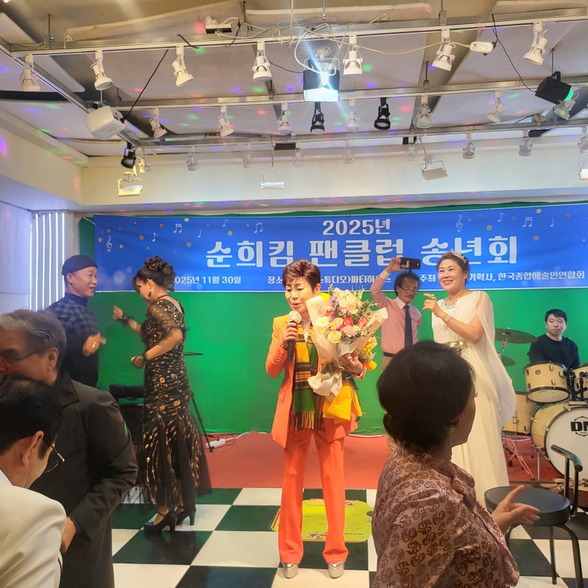 가수 순희 킴 25송연 팬미팅 김경순 기자 2025-12-03 16:40 가 본문내용 확대/축소 본문 가수 순희 킴 25송연 팬미팅가수 순희 킴 25송연 팬미팅가수 순희 킴 25송연 팬미팅 11월 30일 기흥 파티하우스에서 가수 순희 킴은 평소 열렬히 응원하는 팬들에게 조금이나마 송년의 아수움을 달래는 마음과 고마움의 마음을 담아 조촐하게 한 해를 보내면서 미려하지만 자그마한 선물과 혼신을 다하는 노래로 팬 미팅의 자리를 마련 했다. 울림이 있는 뜻 깊은 송연은 순희 킴의 인생노트의 한 페이지를 장식하는데 어느 대형가수보다도 가슴 벅찬 희노애락의 서정시가 사랑의 메시지가 되어 팬들의 마음을 봄비처럼 촉촉이 스며들게 했다. 순희 킴의 가수로서 인생 2막 1장을 열며 순희 킴은 본래 평범하면서도 차분하게 조강지처 자리 와 사랑의 어머니 자리에서 누구보다도 순결한 삶을 살아왔다. 자녀들은 성장하여 제 갈길을 떠나고, 은퇴한 남편과 오순도순 살면서 인생의 2막을 그리어 볼 때 문득 떠오른 단어 한마디가 심경을 울렸다. 그것은 봉사하는 마음이었다. 남편과 상의 하여, 남은 인생 남을 즐겁게하며 잠시만의 위로라도 해보고 싶었던 것이 바로 재능기부로 노래를 불러 ‘함께 웃고 울며 고달픈 세상살이 잠시나마 내려놓고 떠들고 춤추며 쉬어가세’ 그런 저런 마음들을 모아 봉사의길로 인생 2막 1장의 서막을 열게 되었다. 그런 마음으로 평소 좋아하던 노래들을 모아 대표곡 부산가시내를 기반으로 쉬어가는 세월들을 엮어 지친 마음들을 위로하는 봉사자로 이 자리에 섰노라고 순희 킴은 오늘의 속내를 털어 놓았다. 이날, 얼기 설기 얽히면서 살아온 가수 동료들과 팬들이 어울렁 더울렁 춤추고 노래하며 25송년의 밤은 노을진 채색처럼 밤하늘을 수 놓으며 순희 킴의 순수한 마음처럼 아름답게 울려 퍼져나갔다. 팬 여러분 감사합니다. 좋아요 0 싫어요 0 김경순 기자 기자의 다른기사 보기 목록 댓글목록 다음글 이상일 용인특례시장, ‘공동주택 입주자대표회의 소통콘서트’ 마무리 25.11.29