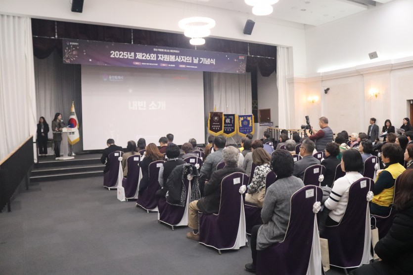 용인시자원봉사센터, 제26회 자원봉사자의 날 기념식 개최…78명 자원봉사자 유공 표창 김경순 기자 2025-12-15 13:31 가 본문내용 확대/축소 본문 용인시자원봉사센터, 제26회 자원봉사자의 날 기념식 개최…78명 자원봉사자 유공 표창용인시자원봉사센터, 제26회 자원봉사자의 날 기념식 개최…78명 자원봉사자 유공 표창 재단법인 용인시자원봉사센터는 지난 12월 10일 시청 컨벤션홀에서 ‘제26회 자원봉사자의 날 기념식’을 개최하고, 지역 곳곳에서 나눔과 실천을 이어온 자원봉사자들에게 감사의 마음을 담아 표창장을 수여했다. 이번 기념식에는 류광열 용인특례시 제1부시장, 이윤미 용인시의회 운영위원장을 비롯한 시의원, 권오성 용인시자원봉사센터장 등 관계자와 수상자 90여 명이 참석해 자리를 함께했다. 이날 행사에서는 국무총리상, 경기도지사상, 용인특례시장상, 용인시의회 의장상, 국회의원상, 자원봉사센터 이사장상 등 총 78명의 자원봉사자와 단체가 수상의 영예를 안았다. 수상자들은 돌봄, 환경, 안전, 교육 등 다양한 분야에서 꾸준한 봉사활동을 통해 지역사회에 기여한 공로를 인정받았다. 류광열 제1부시장은 축사를 통해 “묵묵히 봉사로 지역을 따뜻하게 만들어주신 모든 분들께 진심으로 감사드린다”며 “시도 앞으로 자원봉사 활동이 더욱 활성화될 수 있도록 적극 지원하겠다”고 말했다. 이윤미 의회운영위원장도 “시민의 자발적인 참여와 봉사야말로 지역사회를 지탱하는 힘”이라며 “자원봉사 문화가 더욱 확산될 수 있도록 시의회도 함께하겠다”고 밝혔다. 좋아요 0 싫어요 0 김경순 기자 기자의 다른기사 보기 목록 댓글목록 이전글 용인특례시, 지역 문화예술 발전 이끈 유공자 47명 표창 25.12.16 다음글 비봉산 대곡사 25.12.14