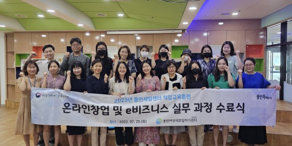 용인특례시 여성새로일하기센터(이하 용인새일센터)가 25일 경력단절 여성 취업역량 강화를 위한 직업교육훈련 수료식을 개최했다고 26일 밝혔다. 용인새일센터는 지난 5월부터 실버사회복지사 양성과정, 온라인창업 및 e비즈니스 실무과정을 운영하고 이날 39명의 수료생을 배출했다. 수료식에는 용인여성새로일하기센터장 등 관계자와 수료생, 강사 등이 참석해 축하했다. 용인새일센터는 두 과정 외에도 지난 3월부터 6월까지 병…