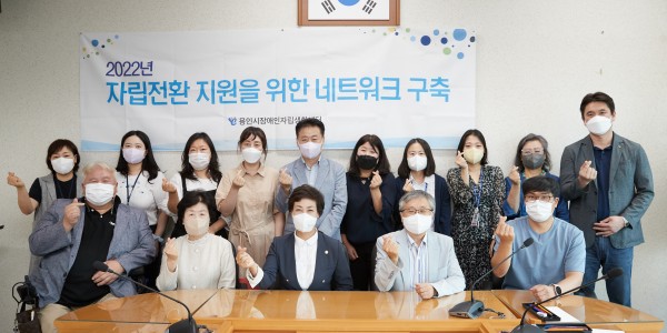 용인시장애인자립생활센터(김정태 센터장)는 8월26일 용인특례시의회 대회의실에서 장애인 탈시설 관련 용인형 자립전환 지원을 위한 네트워크 구축 간담회를 진행하였다 이날 간담회는 용인시장애인자립생활센터(센터장 김정태)의 주관으로 진행되었으며 용인시의회 문화복지위원회 황미상의원과 임현수의원이 참석하였으며 용인시장애인복지과와 강남대학교 이준우교수, 장애인복지관, 사회복지협의회, 소상공인인연합회 해바라기의료사협, 사단법인 희망의 숲등…