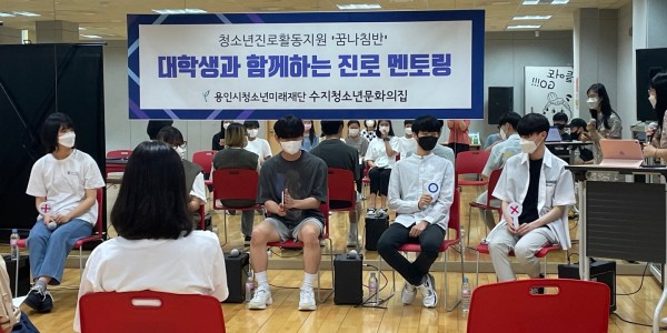 수지청소년문화의집에서는 지난 14일 용인시 관내 14세~ 19세 청소년 15명을 대상으로 청소년진로지원활동‘꿈나침반’2차 활동을 실시했다. 이번 활동은 용인에서 고등학교를 졸업한 대학생 멘토 5명(서울대 의예과, 연세대 기계공학과, 한양대 화학공학과, 단국대 건축학과, 명지대 융합전공학부)이 관내 청소년을 위해 진학 노하우를 전수하는 프로그램을 운영했다. 활동 내용은 중학생들을 위한 희망 고등학교 탐색, 멘토와 함…