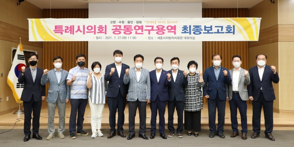 용인시의회 김기준 의장은 27일 오전 11시 세종시지방자치회관에서 열린 공동연구용역 최종보고회와 제6차 전국 특례시의회 의장협의회 회의에 참석했다. 이날 회의에는 김기준 의장과 김운봉 의회운영위원장, 장정순 문화복지위원장을 비롯해 조석환 수원시의회 의장, 이길용 고양시의회 의장, 공창섭 창원시의회 부의장 등이 참석했으며, 공동연구용역 최종보고회, 특례시의회 의장협의회 회의 순으로 진행됐다. 공동연구용역 최종보고회에서…