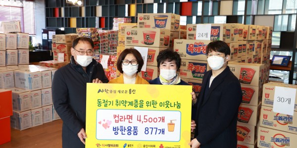 용인시의회 장정순 문화복지위원장(풍덕천1·동천동/더불어민주당)은 28일 오후 2시 수원 광교2동에 위치한 더사랑의교회 로비에서 진행된 긴급구호 물품 전달식에 참석했다. 방역수칙을 철저히 지키며 진행된 이날 전달식에는 용인시의회 장정순위원장·명지선 의원, 더사랑의교회 긴급구호부 이지함 목사, 용인시 관계자 등이 참석했다. 수원시 영통구 광교2동에 위치한 더사랑의교회(담임목사 이인호)는 이웃돕기 성품 컵라면 9,000개…