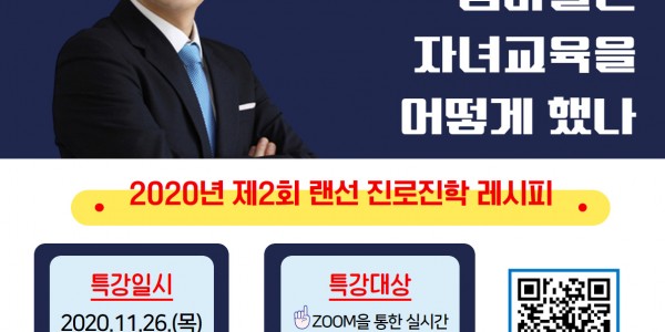 (재)용인시청소년미래재단(이사장 백군기) 용인시청소년진로체험지원센터는 데오럭스 교육그룹 장광원 대표를 초청하여 ‘서울대 합격생 엄마들은 자녀교육을 어떻게 했나’를 주제로 부모교육 특강을 진행한다. 이번 부모교육 특강은 2020년 제2회 랜선 진로진학 레시피 프로그램으로 오는 11월 26일 목요일 10시에 유튜브 용인시청소년미래재단 채널에서 실시간 생중계 된다. 이번 부모교육 특강은 서울대 합격생 엄마들은 자녀와…