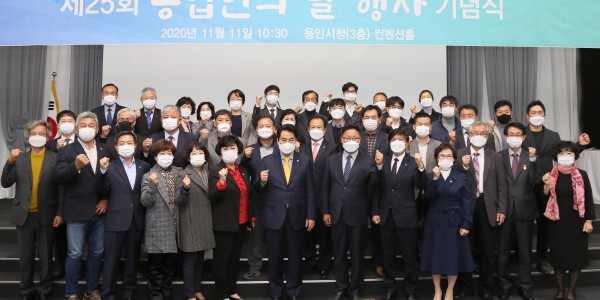 용인시는 11일 제25회 용인시 농업인의 날 기념식을 시청 3층 컨벤션홀에서 진행했다고 밝혔다. 기념식은 백군기 용인시장을 비롯해 김상수 시의회 부의장, 박남숙 시의원, 황재욱 시의원, 이의도 농협중앙회 용인시지부장, 농업인단체 임원 등이 참석했다. 친환경 농업발전 및 경영혁신에 기여한 공로로 윤동하(경종), 임형규(원예특작), 정세현(축산) 씨가 올해 농업인 대상을 수상했고, 그 외 30명에게 유공자 표창을 수여…