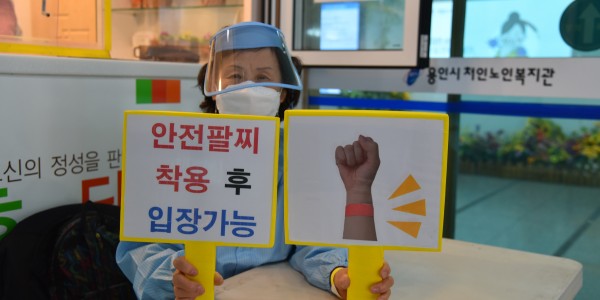 용인시처인노인복지관(관장 김기태)에서는 21일(수) 복지관 입구에서 워킹스루(출입안전시스템)을 운영하고 있다. 지난 12일부터 진행된 워킹스루는 사회적거리두기가 1단계로 하향조정됨에 따라 복지관이 재개하며 쌀쌀해진 날씨에 맞춰 구성하였다. 워킹스루는 어르신 및 시민들이 복지관을 안전하게 이용할 수 있는 방역 시스템으로써, 복지관 입구 천막에서부터 시작되며 워킹스루는 5단계(손소독▸문진표작성▸체온측정▸안전팔찌착용▸안전팔찌…
