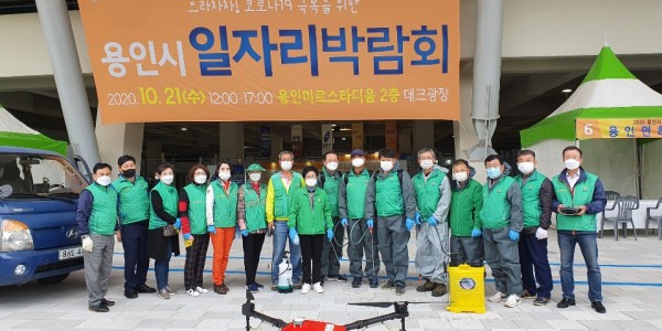 용인시새마을회(회장 김종억)는 미르스타디움에서 실시한 용인시 일자리 박람회 행사장 메인 홀과 주변에 방역과 소독을 실시하였다. 새마을지도자협의회(회장 송태일)와 부녀회(회장 김정식)가 합동으로 실시하였으며, 코로나 19의 기본적 안전수칙 일상생활 준수의 일환으로 새마을부녀회에서「새마을회 마스크 나눔 행사」마스크 약 2천개를 박람회 참석한 용인시민 등에 나누워 주었다. 용인시새마을회(회장 김종억)는 지역…