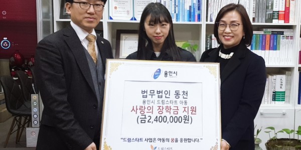 용인시는 지난 18일 법무법인 동천이 드림스타트 아동 2명에게 120만원씩 장학금을 전달했다고 밝혔다. 동천은 지난 11월 드림스타트 아동의 예체능 발표회를 통해 태권도 실력이 출중한 자매를 보고 꿈을 응원하고 싶어 장학금을 마련했다. 김용숙 동천 소장은 “어려운 가정의 아이들이 꿈을 포기하지 않도록 작은 희망을 나누려는 것”이라며 “앞으로도 꾸준히 아이들의 꿈을 응원할 것”이라고 말했다. 시는 경기사회복지공동…