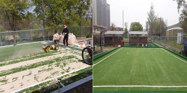 용인시 수지구 동천동은 어르신들의 건강한 여가생활을 위해 기존 게이트볼 경기장을 보수하고 보조경기장을 신설했다고 8일 밝혔다. 신규 회원이 지속적으로 증가하고 있지만 기존 게이트볼 경기장이 노후한데다 보조 경기장 없어 불편이 많았기 때문이다. 이에 동은 2200만원을 들여 동천동 763-37번지 일대에 가로 9m 세로 14m 규모의 보조경기장을 만들고 기존 경기장엔 인조잔디를 새로 깔고 휴식을 취할 수 있는 등의자…