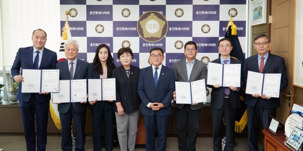 용인특례시의회(의장 윤원균)는 13일 오전 11시 의장실에서 윤리심사자문위원 위촉식을 열었다. 이날 이영림 용인YMCA 실장, 정연욱 세무사, 조준현 변호사, 현광식 그레이스 신학대학교 교수, 이정재 용인예술과학대학교 교수, 남효응 전 국회 입법 지원 위원, 김태형 단국대학교 교수 등 7명이 용인시의회 윤리특별위원회 구성과 운영에 관한 규칙 제10조 등에 의거해 윤리심사자문위원으로 위촉됐다. 윤원균 의장은 인사말을 …