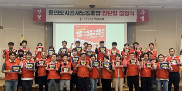 용인도시공사노동조합(위원장 양희정)은 지난 9일‘2023년 임단협 출정식’을 개최하여 성공적인 임단협(임금 및 단체협약)을 위한 결의를 다졌다고 밝혔다. 이날 출정식에는 용인도시공사 직원으로 구성된 조합원들이 참석한 가운데 현장 노동자로부터 임단협 안건을 수렴하는 자리를 가졌다. …