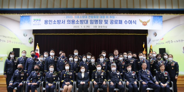 용인소방서(서장 서승현)는 5일 오전 3층 대회의실에서 용인 의용소방대 연합회장 및 40개대 의용소방대장에게 임명장 및 공로패 수여식을 진행했다고 밝혔다. 이날 행사에는 경기도의회 전자영 의원, 이영희 의원, 정하용 의원, 소방공무원 및 의용소방대원 등 180여명이 참석해 연합회장 …