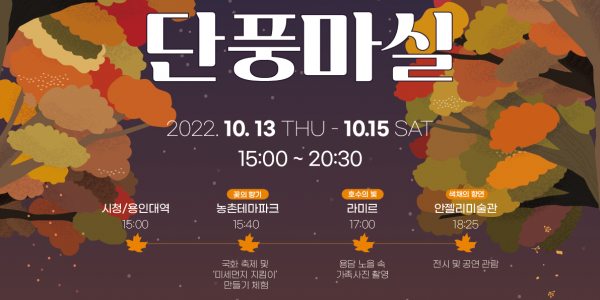 단풍이 곱게 물든 10월, 용인으로 나들이를 떠나보는 것은 어떨까. 용인특례시는 ‘용인에서 즐기는 인생 힐링 여행’을 테마로 ‘용인 단풍마실’을 준비했다. 앞서 지난 1~3일 큰 호응을 얻었던 ‘용인 별빛마실’의 또 다른 버전이다. 용인 단풍마실은 버스를 타고 용인의 곳곳을…
