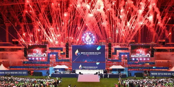 용인특례시에서 처음으로 ‘경기도종합체육대회’의 막이 올랐다. 용인시 38개 읍면동 순회를 마친 성화가 마침내 용인 미르스타디움을 밝혔다. ‘제68회 경기도체육대회 2022 용인’의 개회식이 25일 용인미르스타디움(용인시 처인구 삼가동)에서 개최됐다. ‘경기도의 함성, 용인…