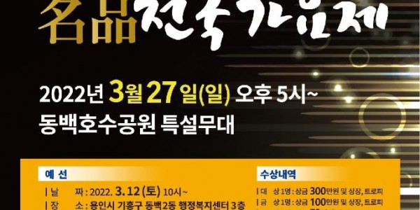 3월 27일 ‘제1회 용인 명품 전국가요제’가 열린다. 용인시와 사단법인 대한국가수협회 용인지부가 공동 주최하는 이번 행사는 ‘2022년 경기도종합체육대회’의 성공 기원과 용인특례시 출범을 축하하기 위해 준비했다. 용인시민뿐 아니라 노래를 좋아하는 대한민국의 국민이라면 누…