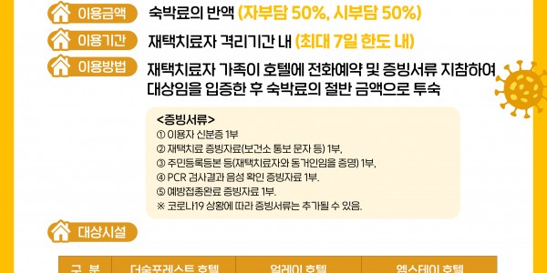 관내 3곳 호텔 재택치료 가족에‘안심숙소’로 제공