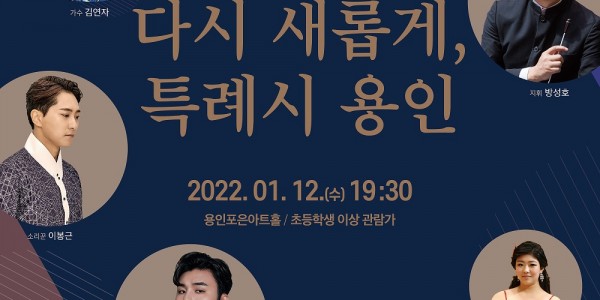 용인문화재단(이사장 백군기)이 용인특례시 출범을 기념하여 전야제인 ‘다시 새롭게, 특례시 용인’ 을 오는 12일 저녁 7시 30분 용인포은아트홀에서 개최한다. 국악과 클래식이 함께하는 이번 공연은 지역예술단체 서한우버꾸춤보존회의 복을 기원하는 ‘문굿’ 공연을 시작으로, ‘뱃노래’,…